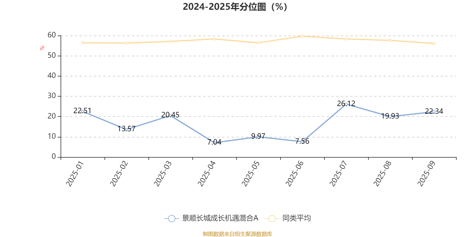 通过所选区间该基金净值增长率分位图,可以观察该基金与同类基金业绩比较情况。图为坐标原点到区间内某时点的净值增长率在同类基金中的分位数。