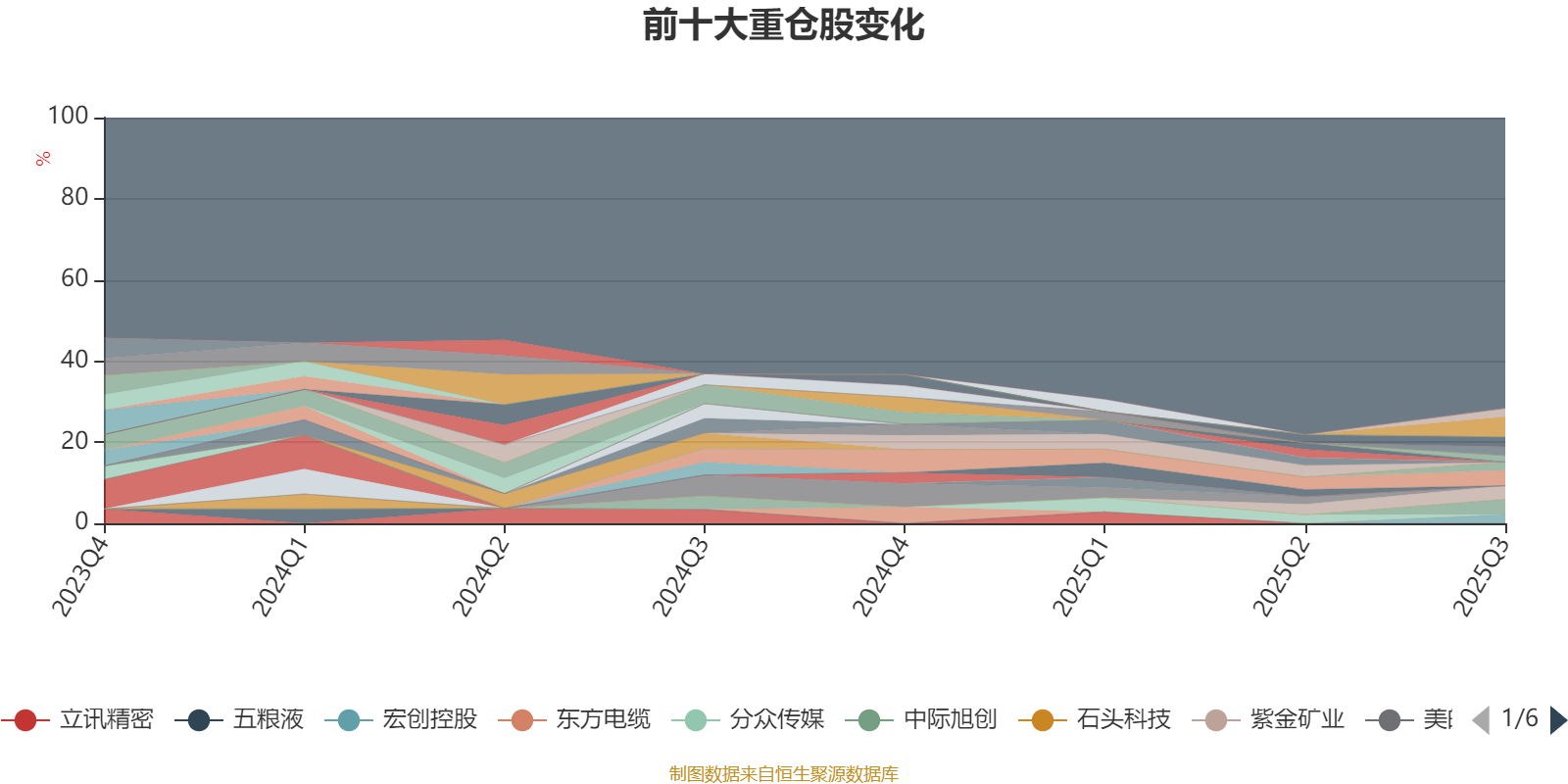 截至2025年三季度末,基金十大重仓股分别是工业富联、宁德时代、中际旭创、紫金矿业、沪电股份、宏创控股、新易盛、源杰科技、生益科技、恒瑞医药。