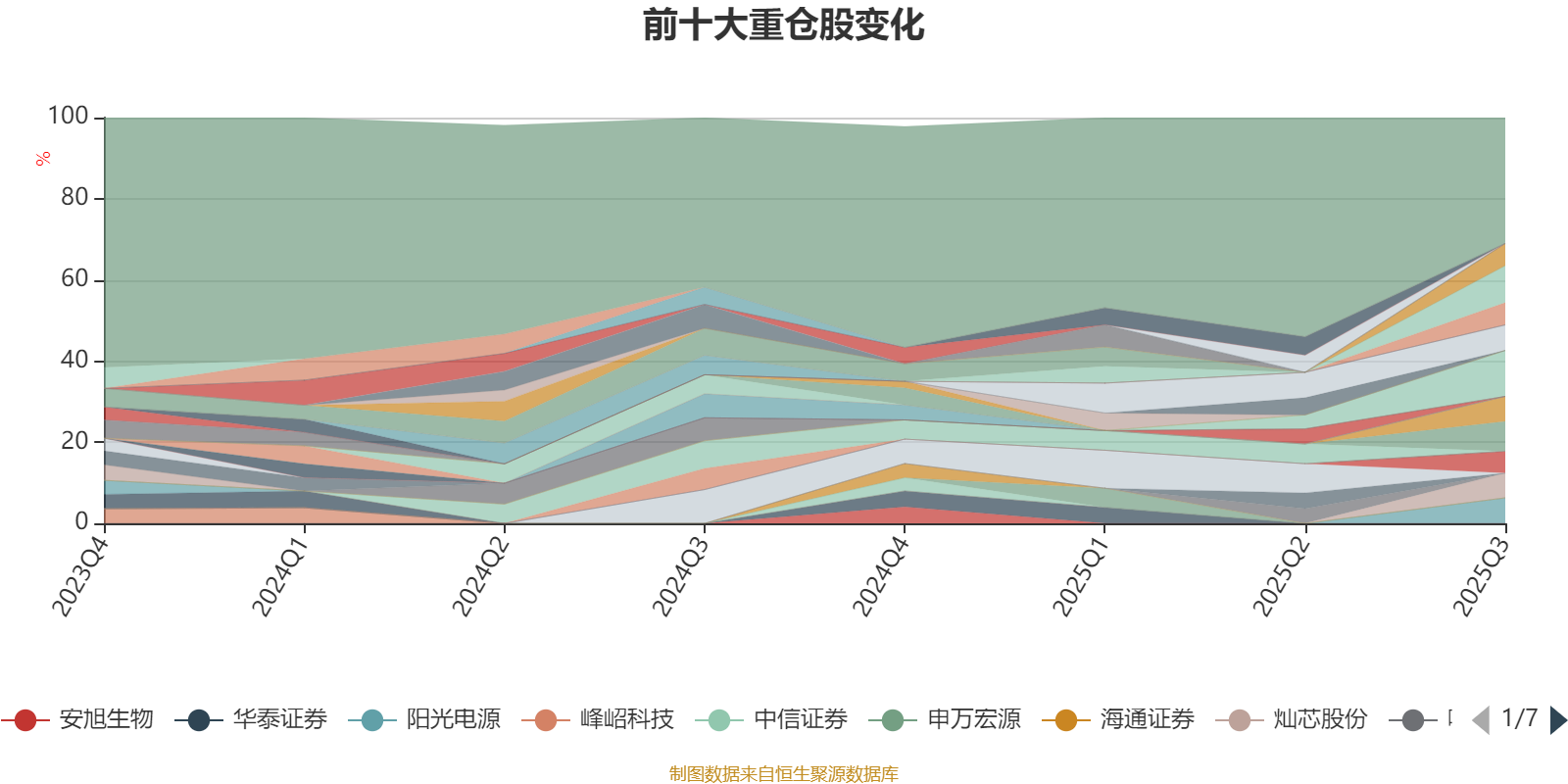 基金管理人在三季报中表示,基于对海外 AI“投资飞轮”的理解,我们认为在国产算力方向上也会有同样的演绎,三季度组合增加了在国产算力方向的配置。可转债的配置也以正股思路为主,在机器人、半导体等方向寻找股性标的配置。债券方面,三季度组合主动降低了持仓纯债的久期。
