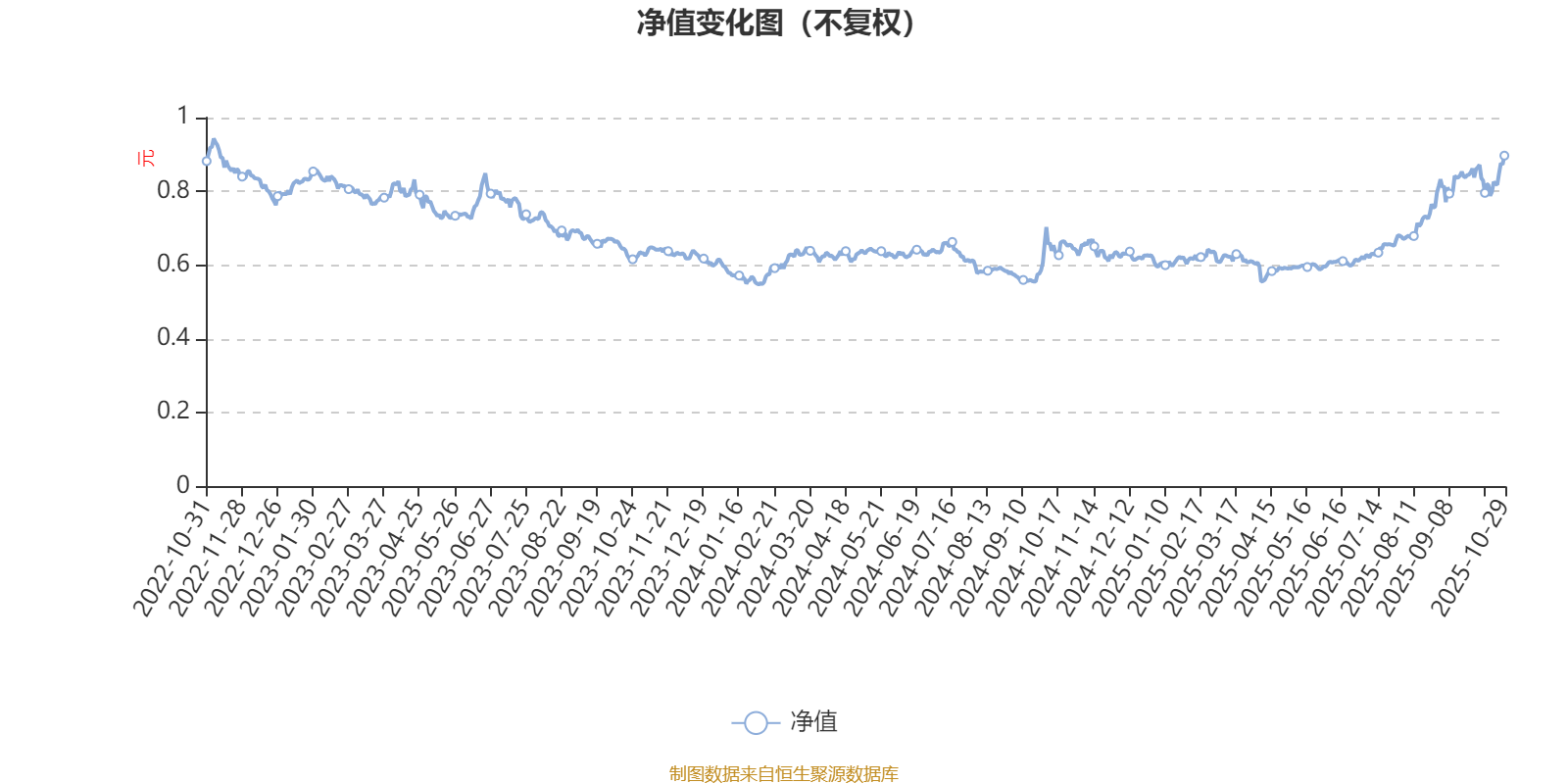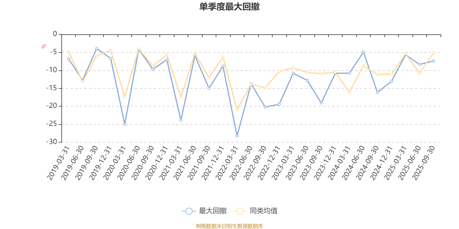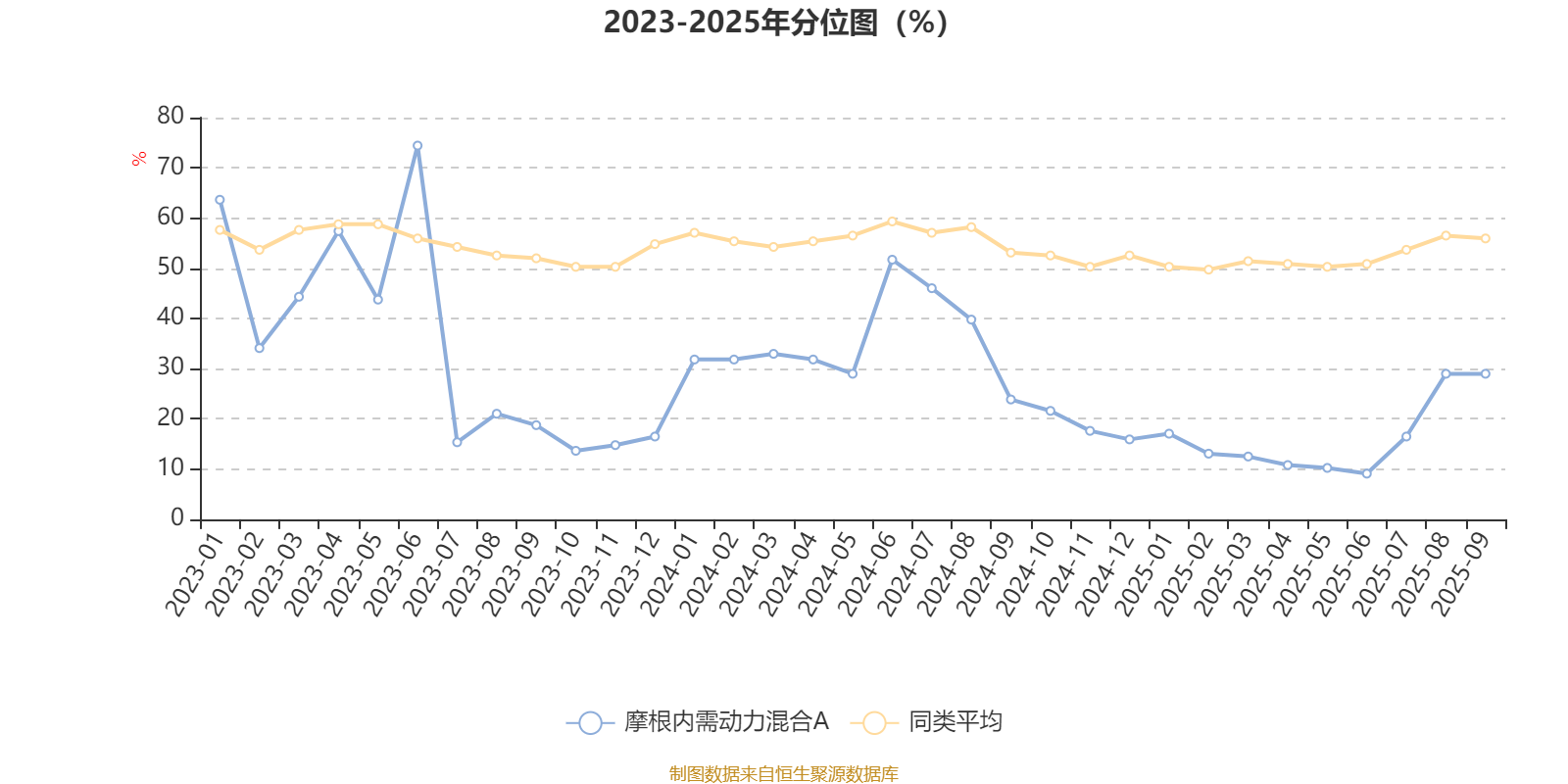 通过所选区间该基金净值增长率分位图,可以观察该基金与同类基金业绩比较情况。图为坐标原点到区间内某时点的净值增长率在同类基金中的分位数。