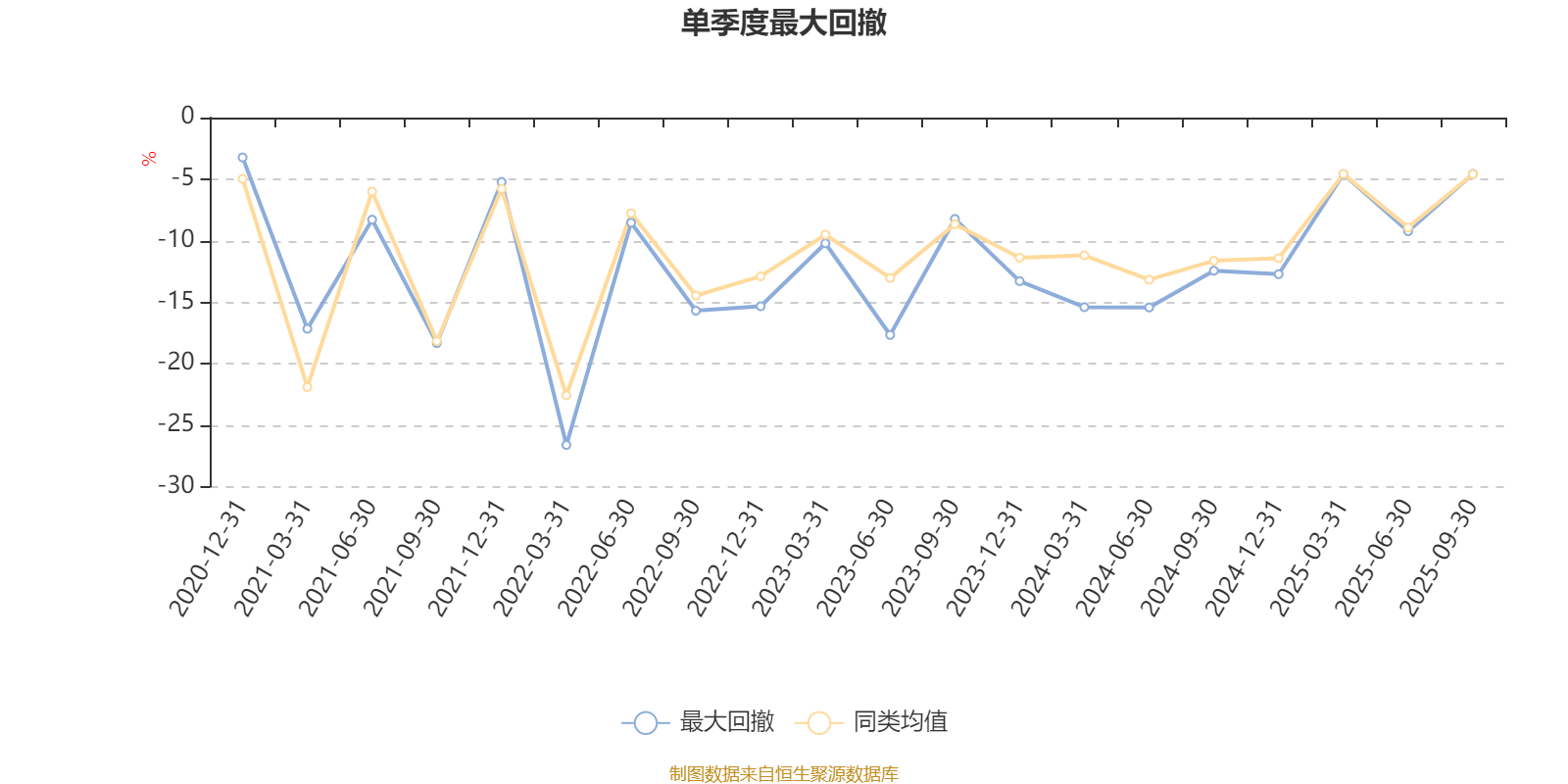 通过所选区间该基金净值增长率分位图,可以观察该基金与同类基金业绩比较情况。图为坐标原点到区间内某时点的净值增长率在同类基金中的分位数。