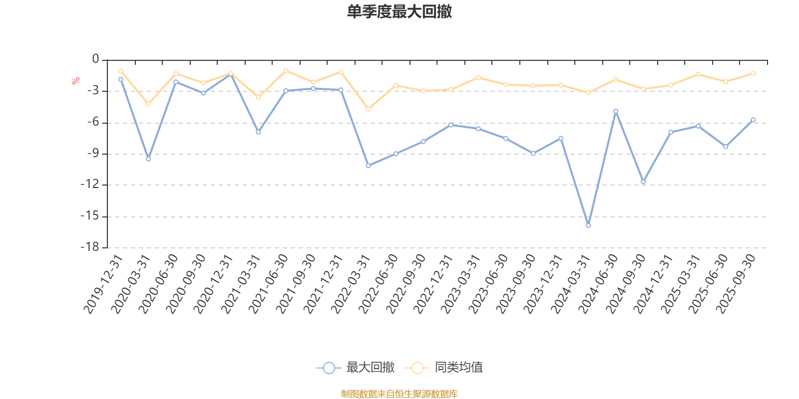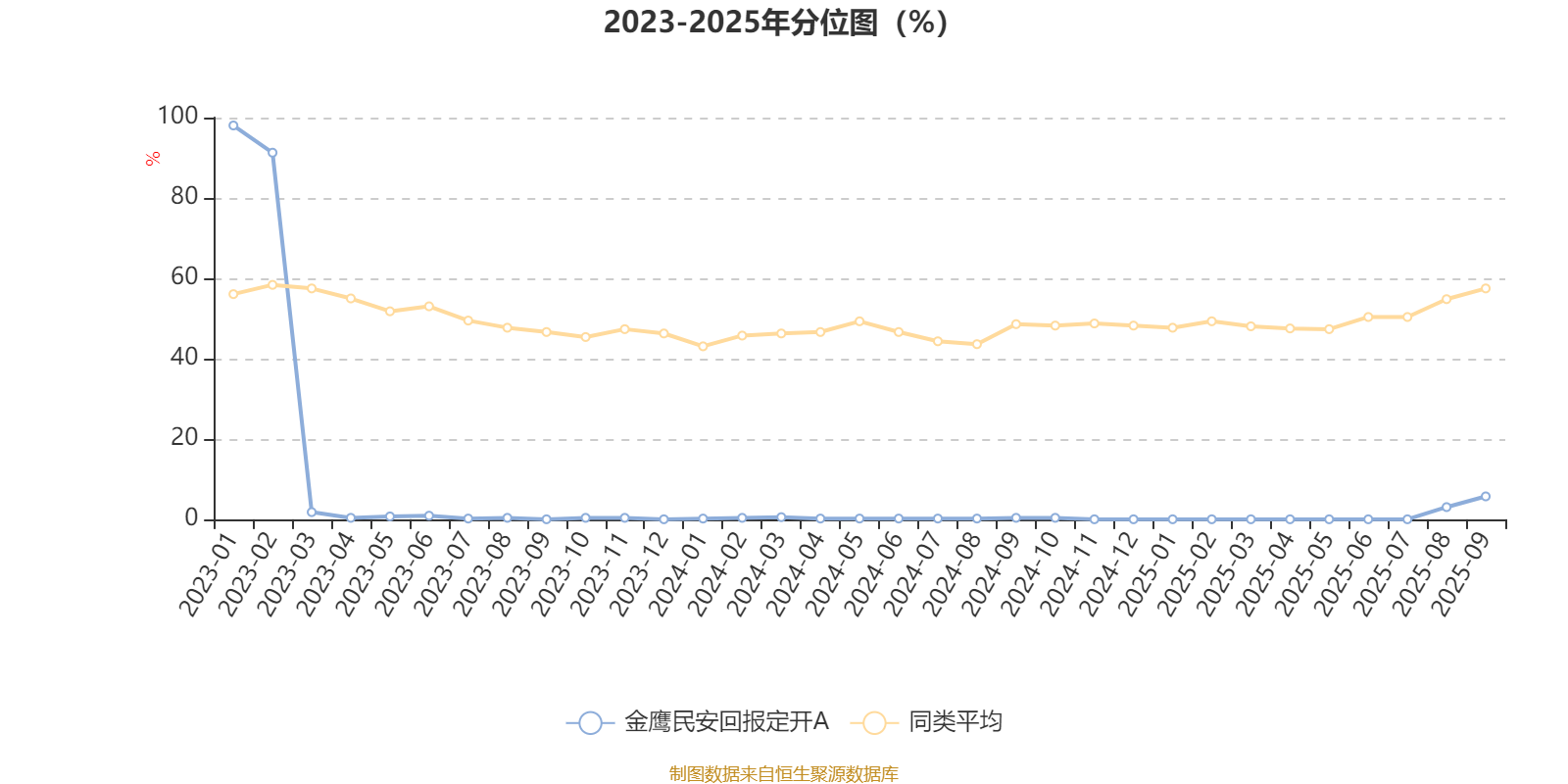 通过所选区间该基金净值增长率分位图,可以观察该基金与同类基金业绩比较情况。图为坐标原点到区间内某时点的净值增长率在同类基金中的分位数。