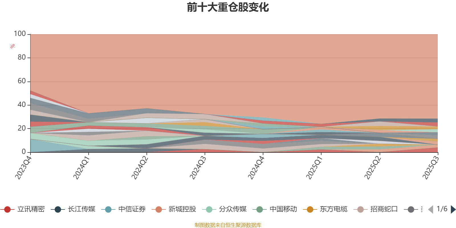 截至2025年三季度末,基金十大重仓股分别是立讯精密、三环集团、明阳智能、恺英网络、中国国航、吉祥航空、恒瑞医药、新城控股、宁波银行、紫光国微。