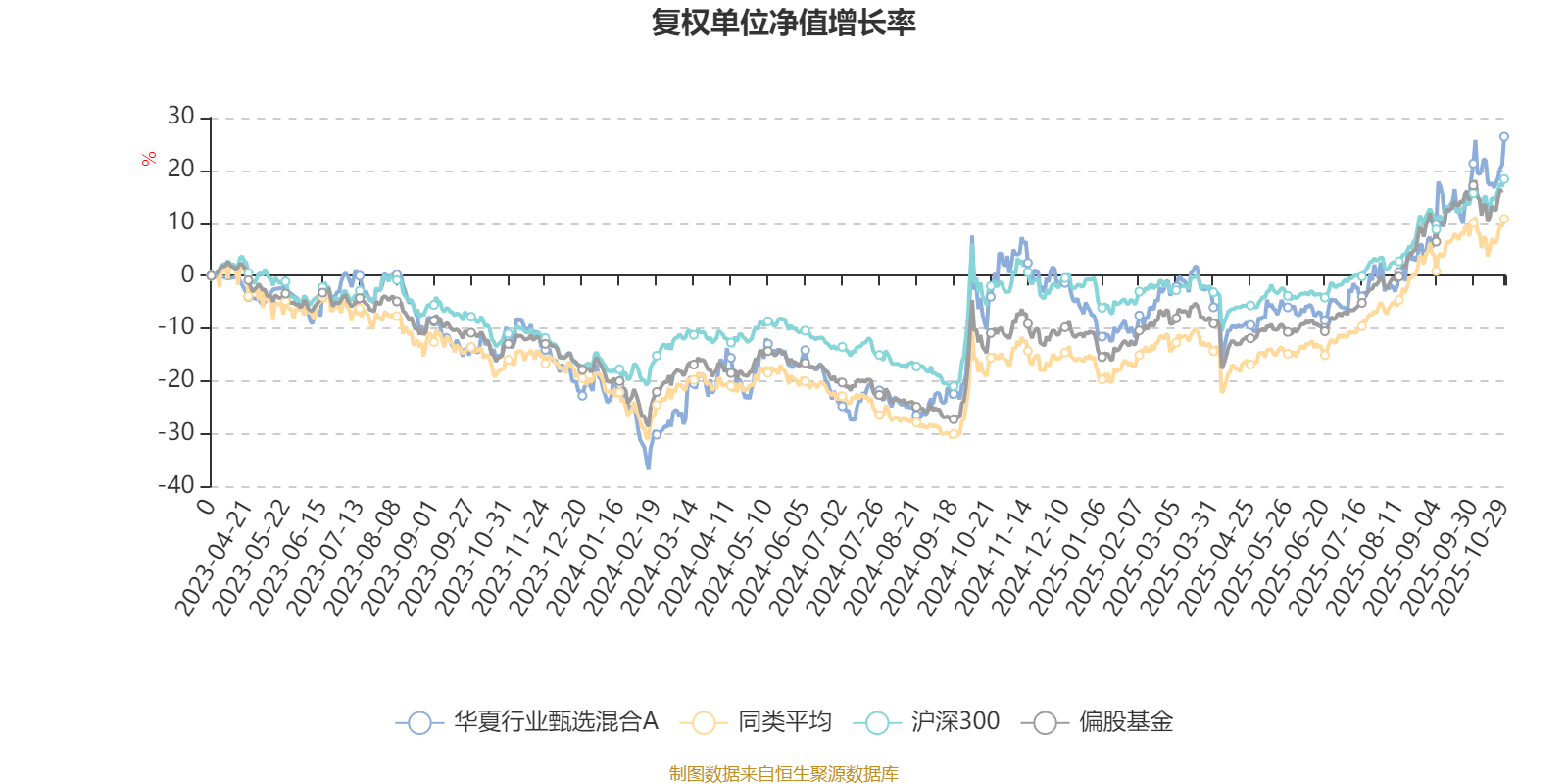 截至10月29日,华夏行业甄选混合A近三个月复权单位净值增长率为23.24%,位于同类可比基金149/621;近半年复权单位净值增长率为41.43%,位于同类可比基金153/621;近一年复权单位净值增长率为23.76%,位于同类可比基金391/611。
