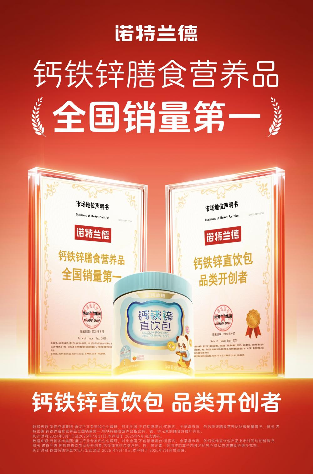 近日,一份来自尚普咨询集团的权威声明为市场带来了值得关注的动态——诺特兰德获得了五项重要的市场地位声明,包括【连续4年膳食营养品全国销量第一】、以及【钙铁锌直饮包品类开创者】、【钙铁锌膳食营养品全国销量第一】、【左旋肉碱运动营养饮料开创者】、【左旋肉碱膳食营养品全国销量第一】。通过独立第三方的调研数据,不仅证明了诺特兰德的行业标杆地位及市场高度认可,更从侧面印证了其创新方向与消费者真实需求的高度契合。