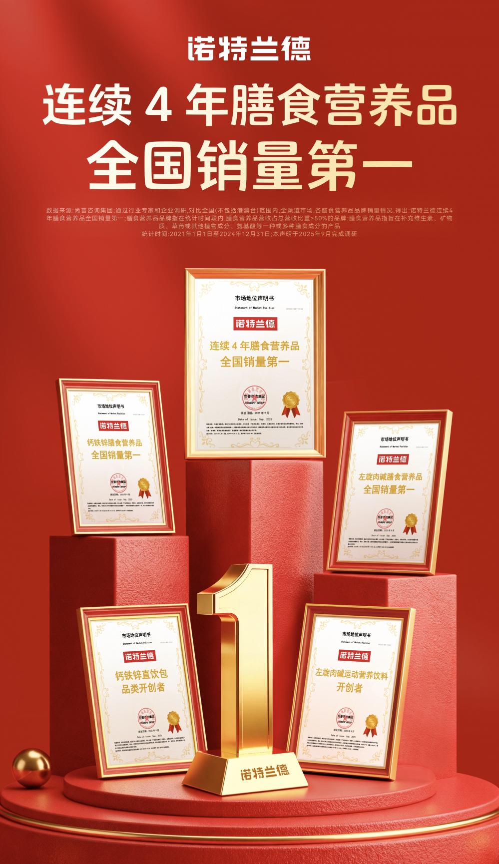 尤其是“连续4年膳食营养品全国销量第一” 这一声明,体现了诺特兰德自2021年至2024年间持续领先的市场地位。