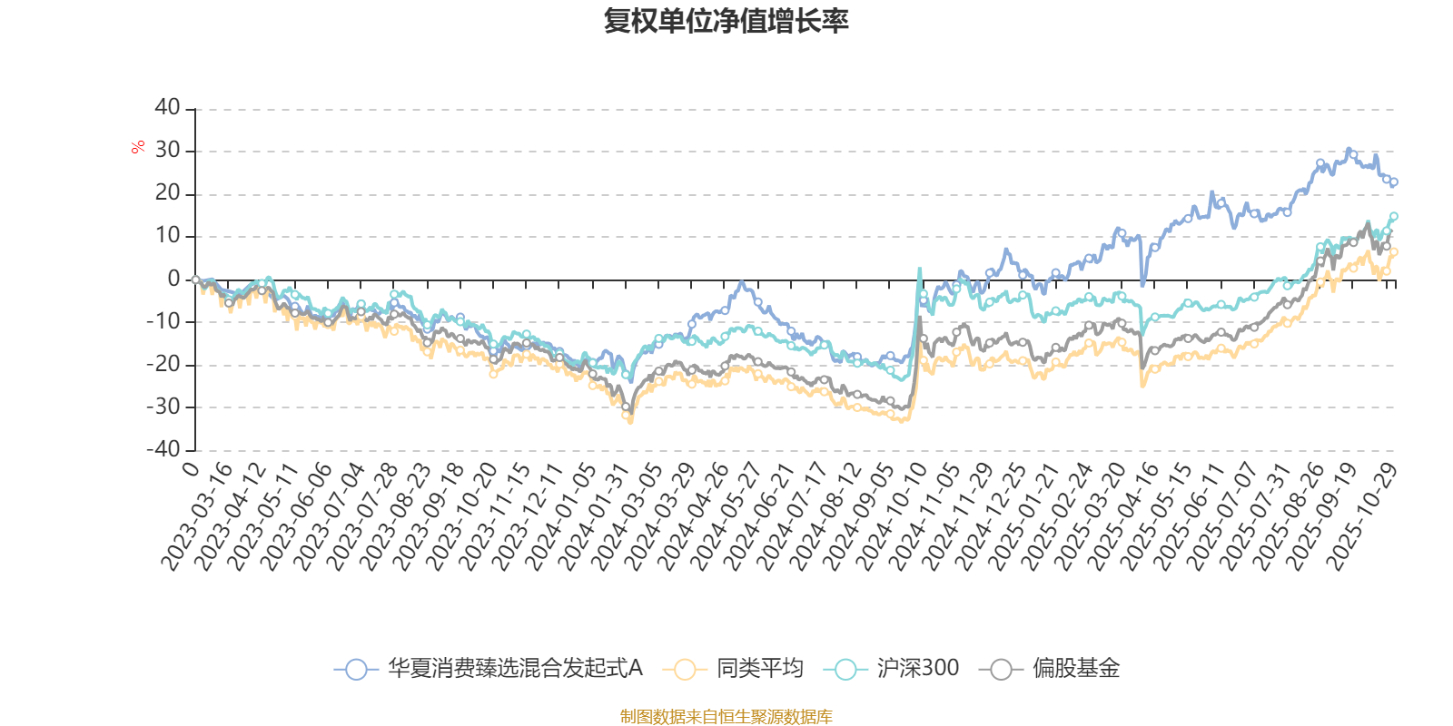 截至10月29日,华夏消费臻选混合发起式A近三个月复权单位净值增长率为5.66%,位于同类可比基金512/621;近半年复权单位净值增长率为8.63%,位于同类可比基金594/621;近一年复权单位净值增长率为24.41%,位于同类可比基金376/611。