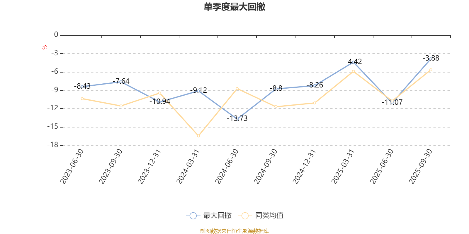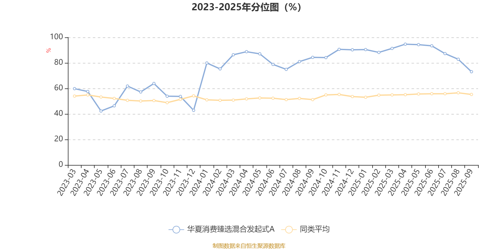 通过所选区间该基金净值增长率分位图,可以观察该基金与同类基金业绩比较情况。图为坐标原点到区间内某时点的净值增长率在同类基金中的分位数。