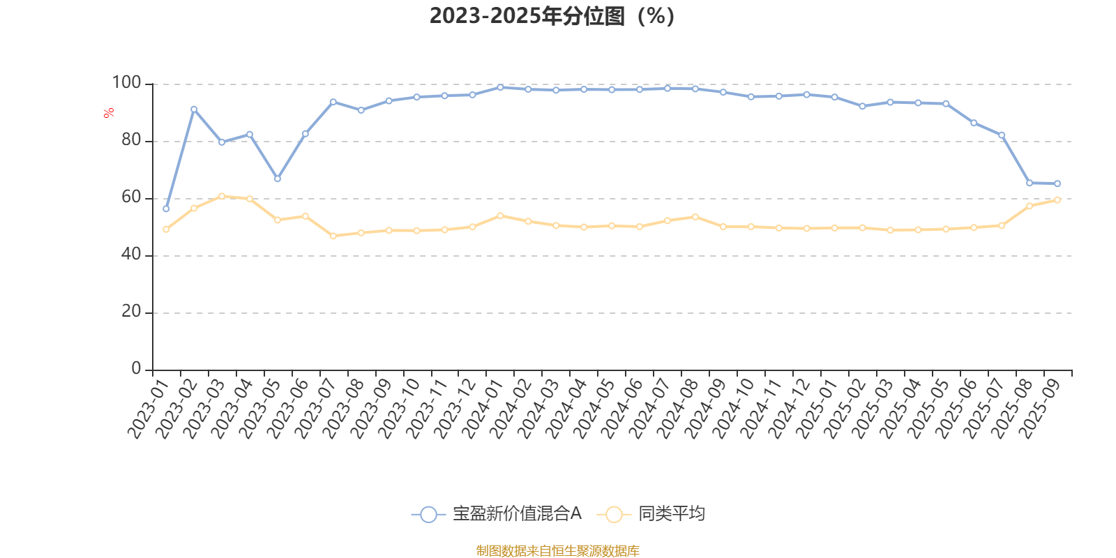 通过所选区间该基金净值增长率分位图,可以观察该基金与同类基金业绩比较情况。图为坐标原点到区间内某时点的净值增长率在同类基金中的分位数。