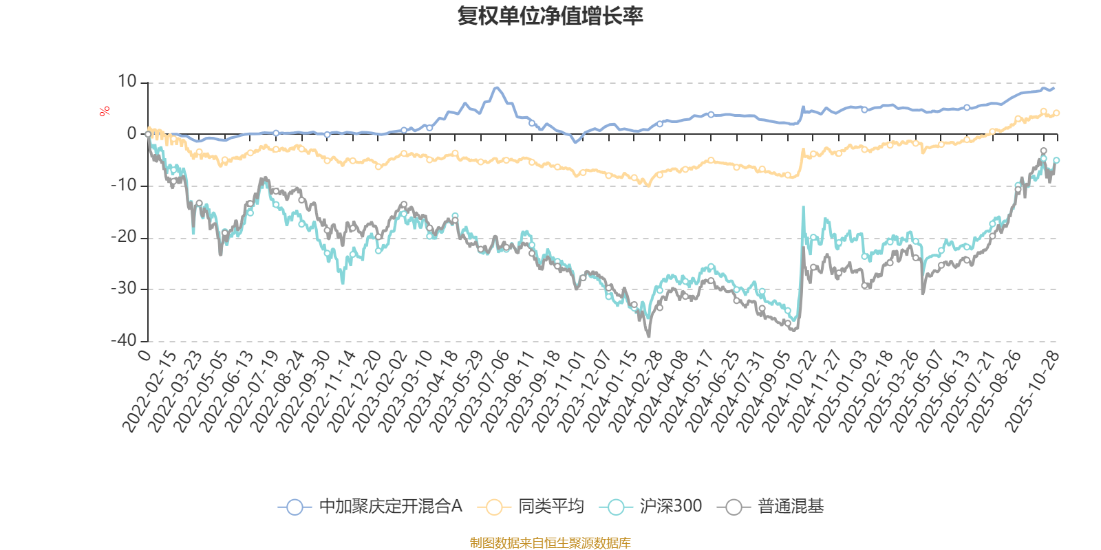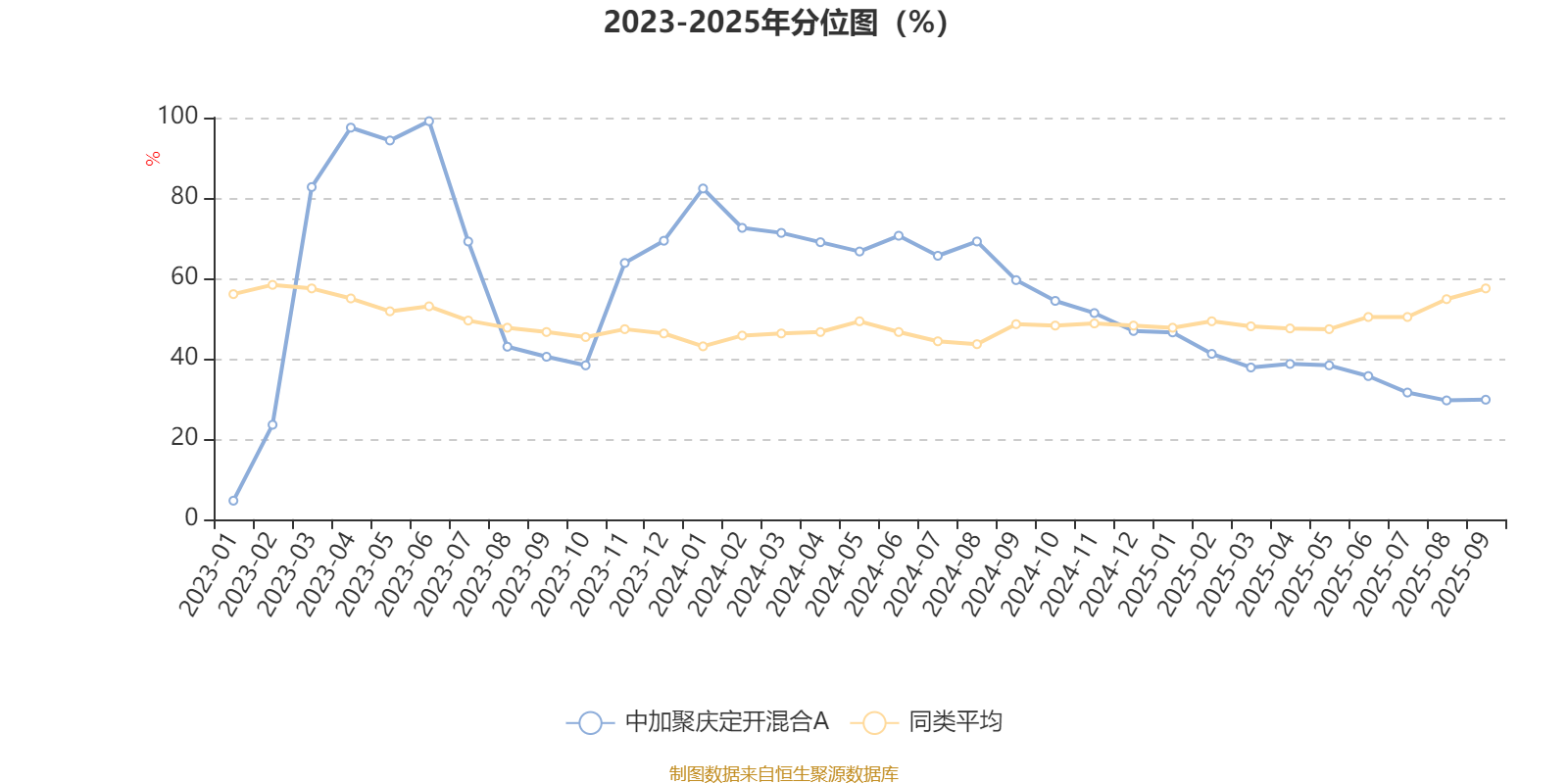 截至10月24日,中加聚庆定开混合A近三个月复权单位净值增长率为2.86%,位于同类可比基金260/629;近半年复权单位净值增长率为4.44%,位于同类可比基金376/629;近一年复权单位净值增长率为4.29%,位于同类可比基金499/623;近三年复权单位净值增长率为8.61%,位于同类可比基金395/557。