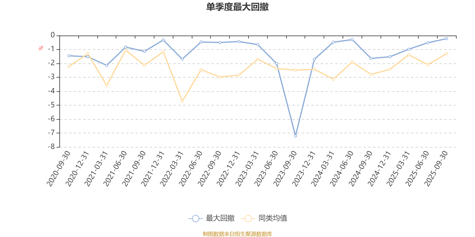 截至10月24日,基金近三年最大回撤为9.75%,同类可比基金排名405/552。单季度最大回撤出现在2023年三季度,为7.2%。