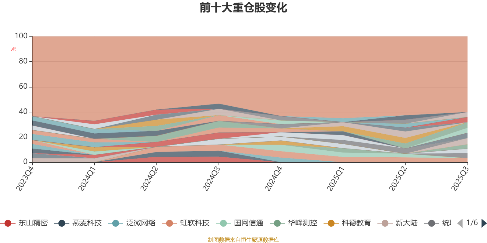 截至2025年三季度末,基金十大重仓股分别是世运电路、歌尔股份、汇顶科技、思瑞浦、领益智造、恺英网络、统联精密、环旭电子、闻泰科技、虹软科技。