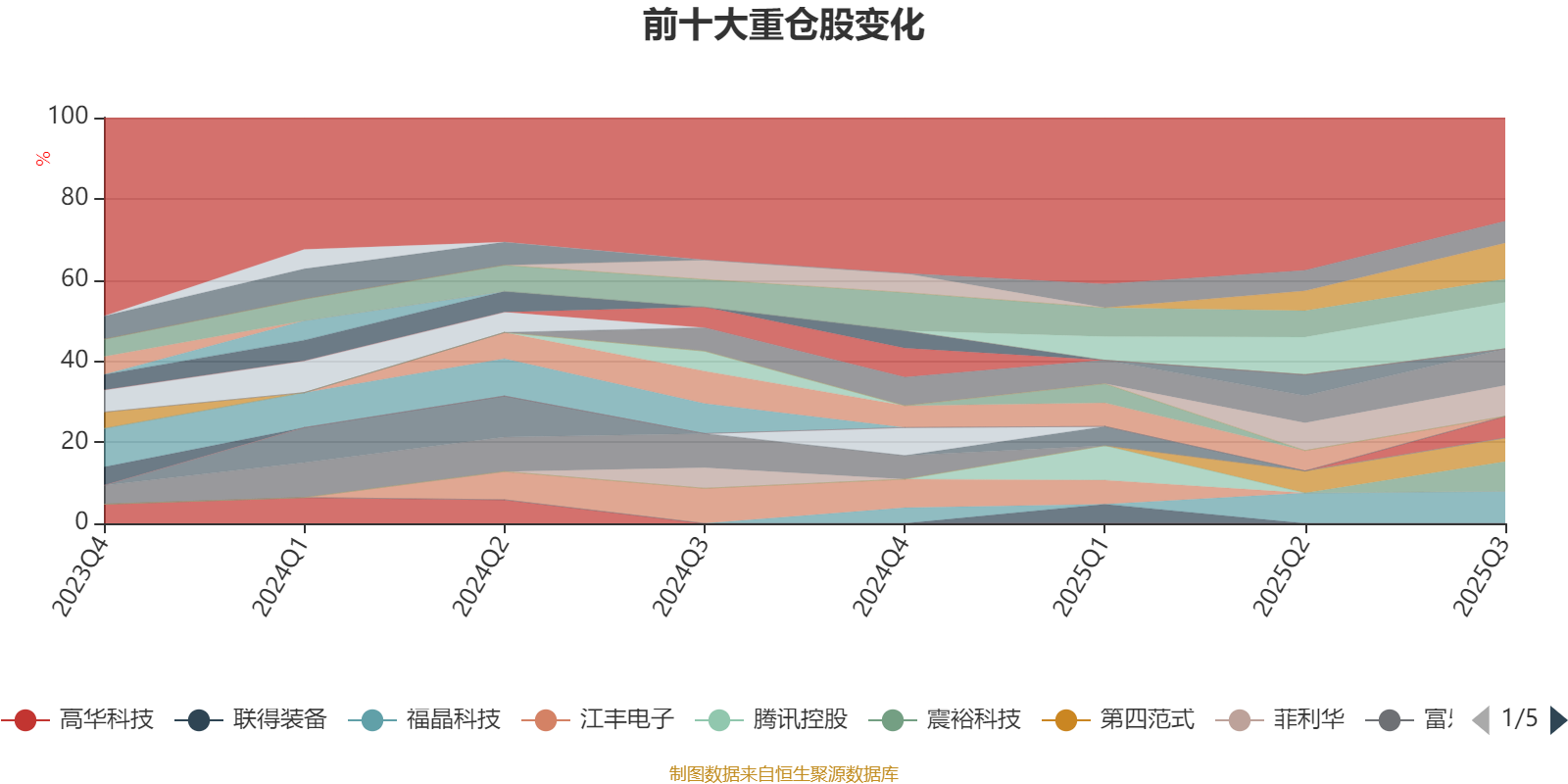 该基金持股集中度较高。截至2025年三季度末,基金十大重仓股分别是华虹半导体、海光信息、快手-W、福晶科技、芯源微、震裕科技、第四范式、联瑞新材、广钢气体、兆易创新。