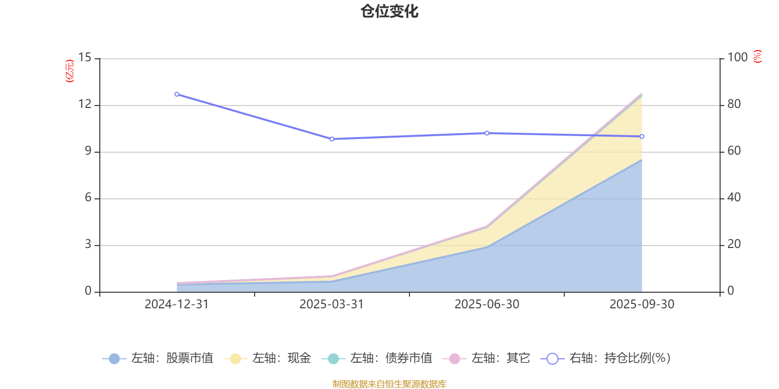 据定期报告数据统计,成立以来平均股票仓位为71.14%,同类平均为85.66%。2024年末基金达到84.62%的最高仓位,2025年一季度末最低,为65.44%。