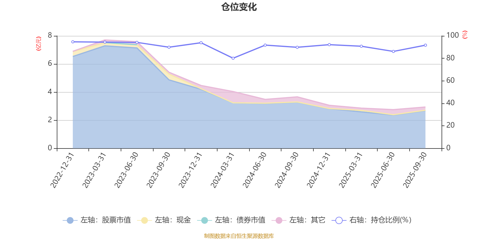 据定期报告数据统计,近三年平均股票仓位为90.8%,同类平均为83.73%。2022年末基金达到94.68%的最高仓位,2024年一季度末最低,为80.11%。