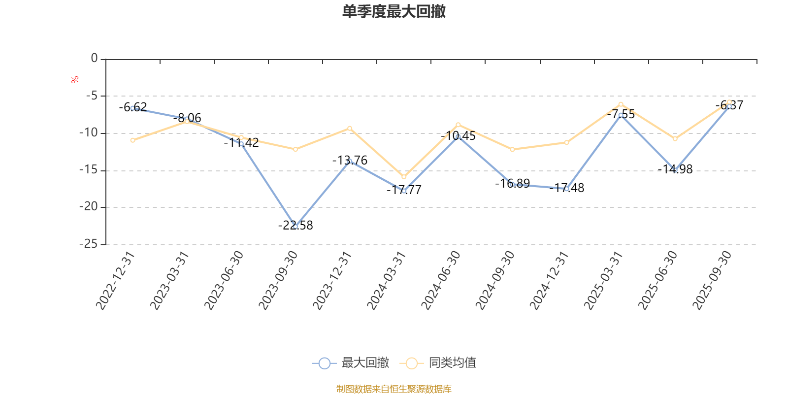 截至10月28日,基金近三年最大回撤为48.01%,同类可比基金排名316/363。单季度最大回撤出现在2023年三季度,为22.58%。