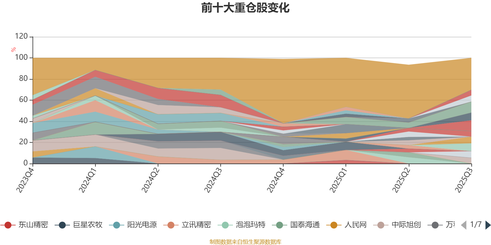 截至2025年三季度末,基金十大重仓股分别是阿里巴巴-W、中芯国际、科达利、优必选、德昌电机控股、均胜电子、华虹半导体、中际旭创、新易盛、慧辰股份。