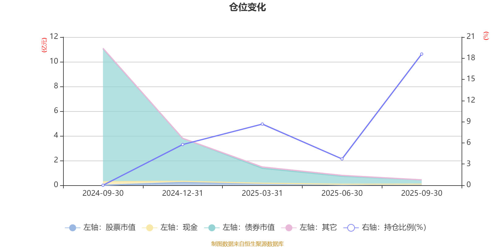 据定期报告数据统计,成立以来平均股票仓位为7.35%,同类平均为19.14%。2025年三季度末基金达到18.59%的最高仓位,2025年上半年末最低,为3.73%。