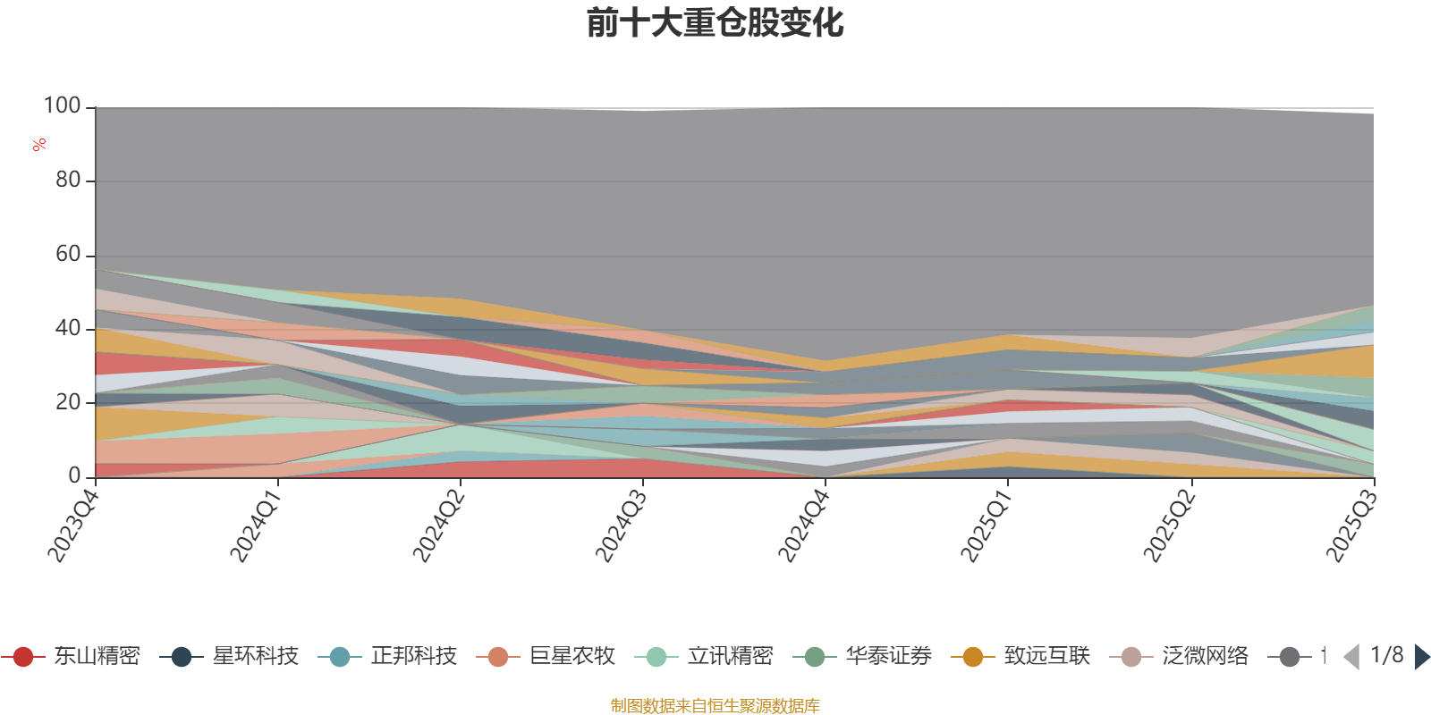 截至2025年三季度末,基金十大重仓股分别是三花智控、德业股份、拓普集团、浙江荣泰、科博达、新凤鸣、震裕科技、新泉股份、安培龙、温氏股份。