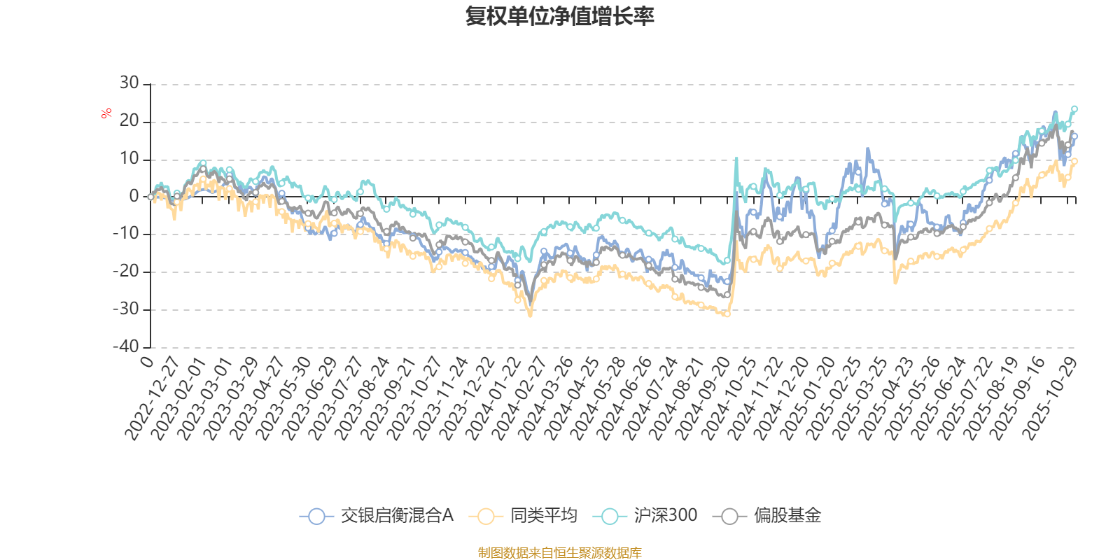 截至10月29日,交银启衡混合A近三个月复权单位净值增长率为7.61%,位于同类可比基金481/621;近半年复权单位净值增长率为23.71%,位于同类可比基金422/621;近一年复权单位净值增长率为22.04%,位于同类可比基金414/611。