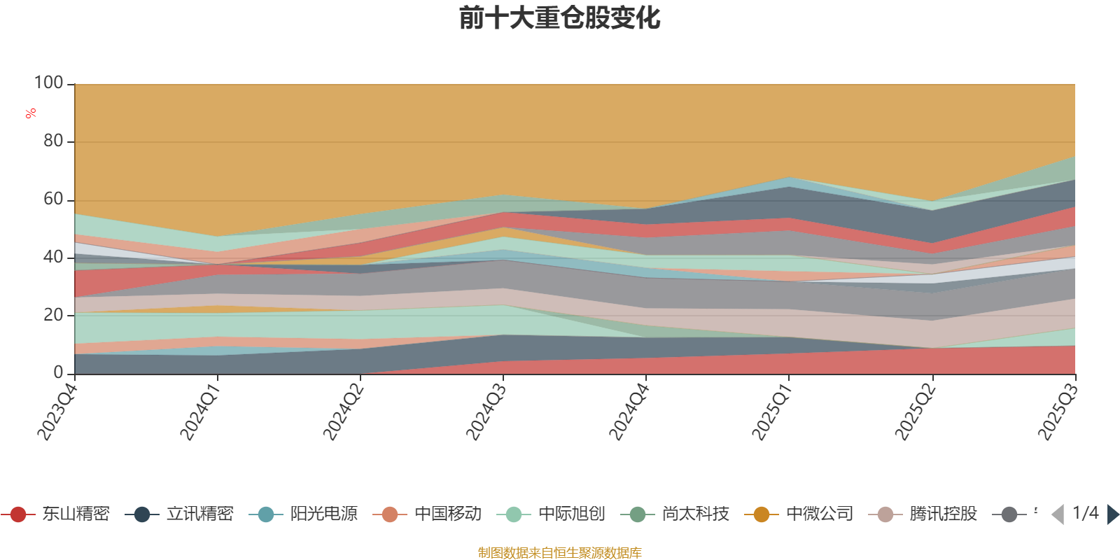截至2025年三季度末,基金十大重仓股分别是宁德时代、腾讯控股、东山精密、胜宏科技、新易盛、亿纬锂能、中芯国际、中际旭创、三生制药、徐工机械。