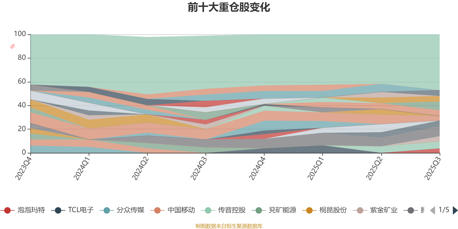 该基金持股集中度较高。截至2025年三季度末,基金十大重仓股分别是腾讯控股、阿里巴巴-W、传音控股、华虹半导体、海丰国际、华润万象生活、美的集团、紫金矿业、顺丰控股、泡泡玛特。