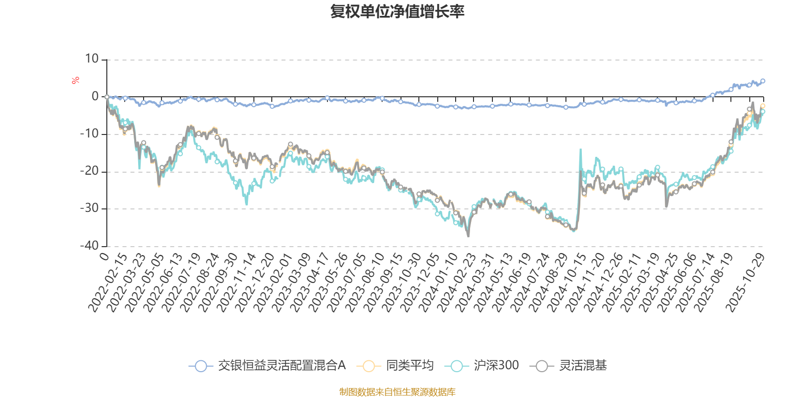 截至10月29日,交银恒益灵活配置混合A近三个月复权单位净值增长率为2.92%,位于同类可比基金1041/1287;近半年复权单位净值增长率为5.94%,位于同类可比基金1119/1287;近一年复权单位净值增长率为6.11%,位于同类可比基金1120/1287;近三年复权单位净值增长率为6.89%,位于同类可比基金893/1286。