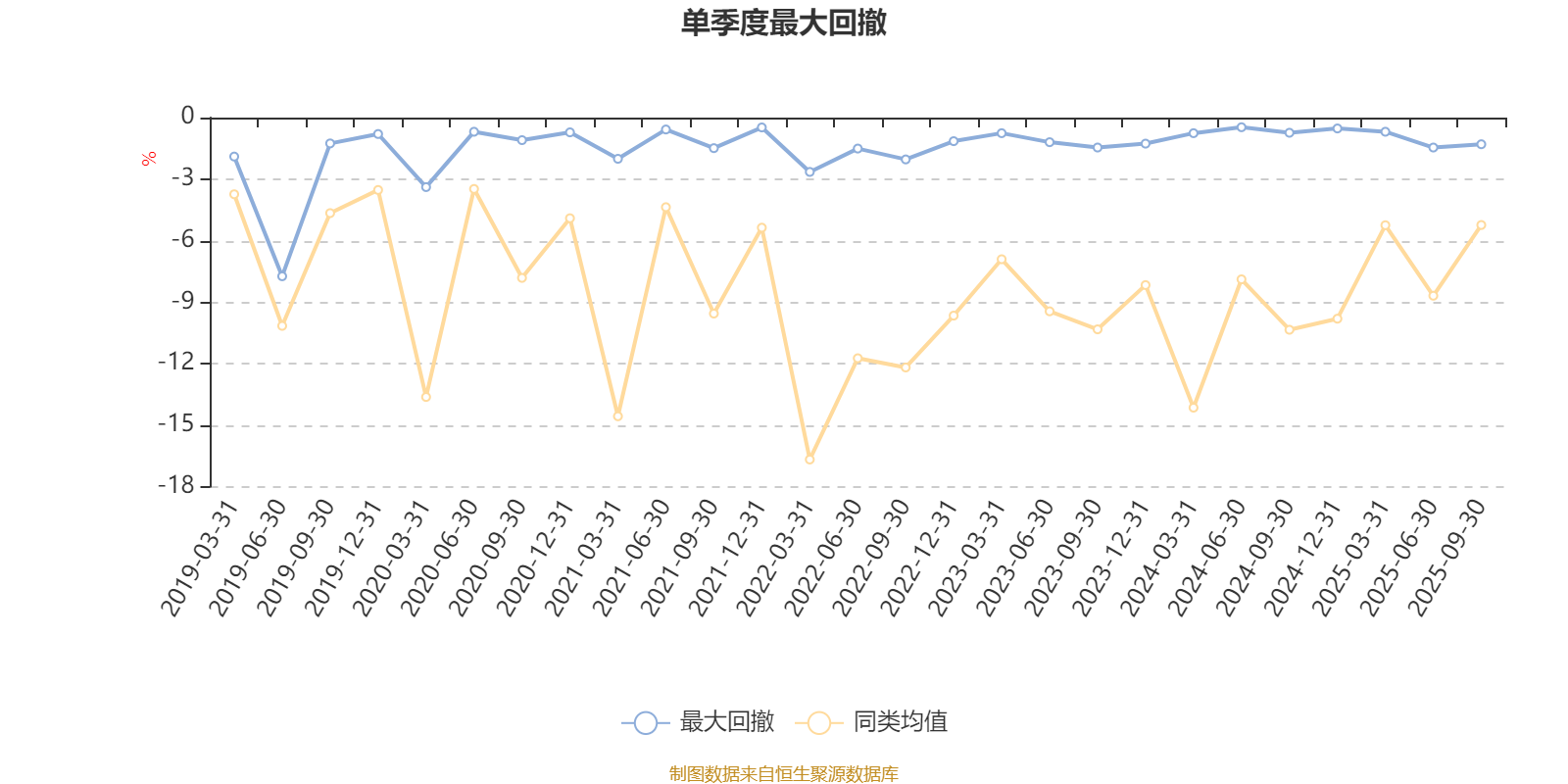 截至10月29日,基金近三年最大回撤为3.07%,同类可比基金排名43/1274。单季度最大回撤出现在2019年二季度,为7.74%。