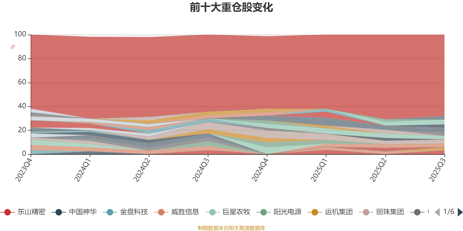 截至2025年三季度末,基金十大重仓股分别是新易盛、中芯国际、宁德时代、东山精密、中国宏桥、徐工机械、亿纬锂能、运机集团、腾讯控股、牧原股份。