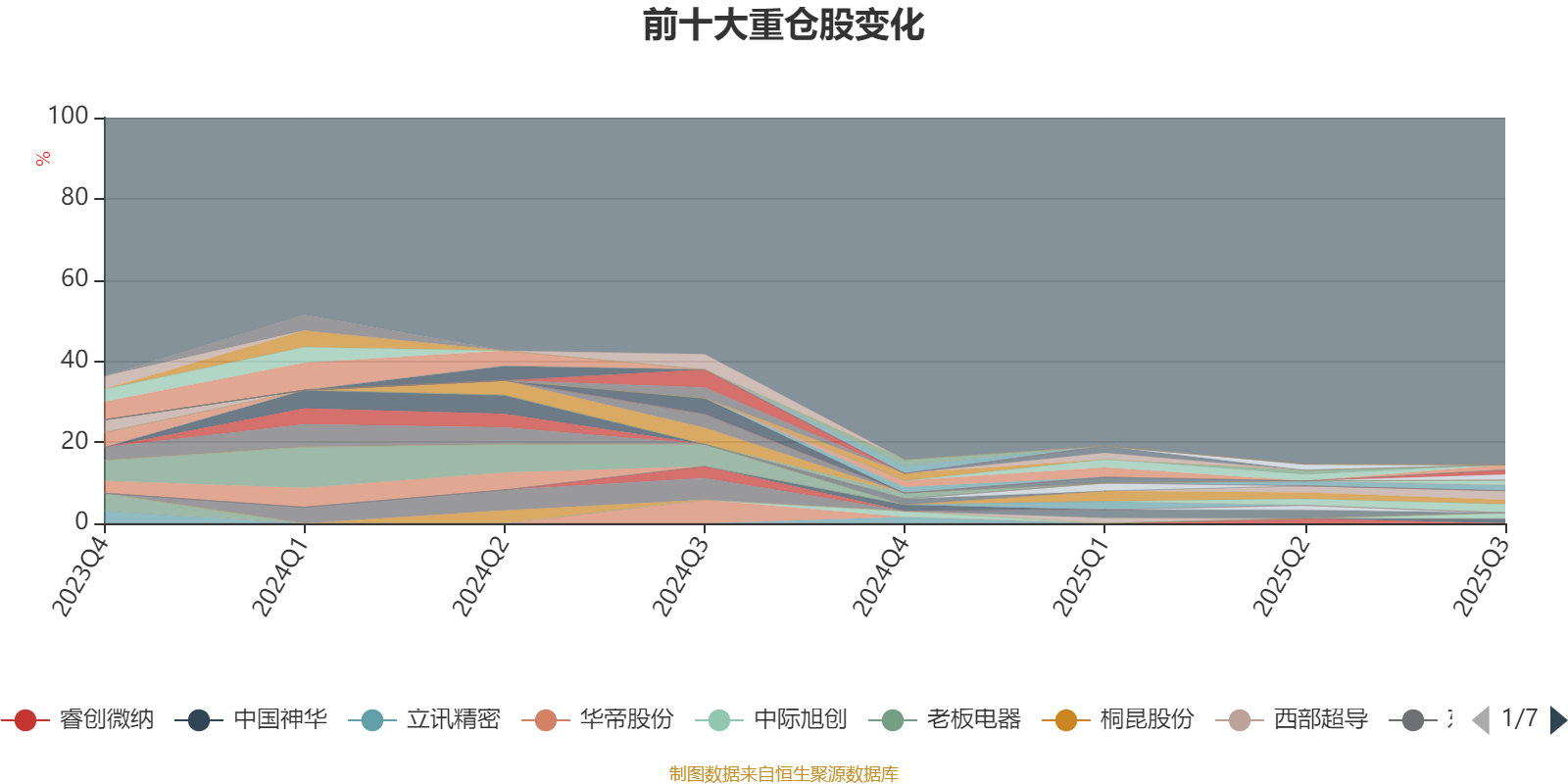 截至2025年三季度末,基金十大重仓股分别是福耀玻璃、贵州茅台、中际旭创、新和成、吉比特、冀中能源、寒武纪、山金国际、中国神华、格力电器。
