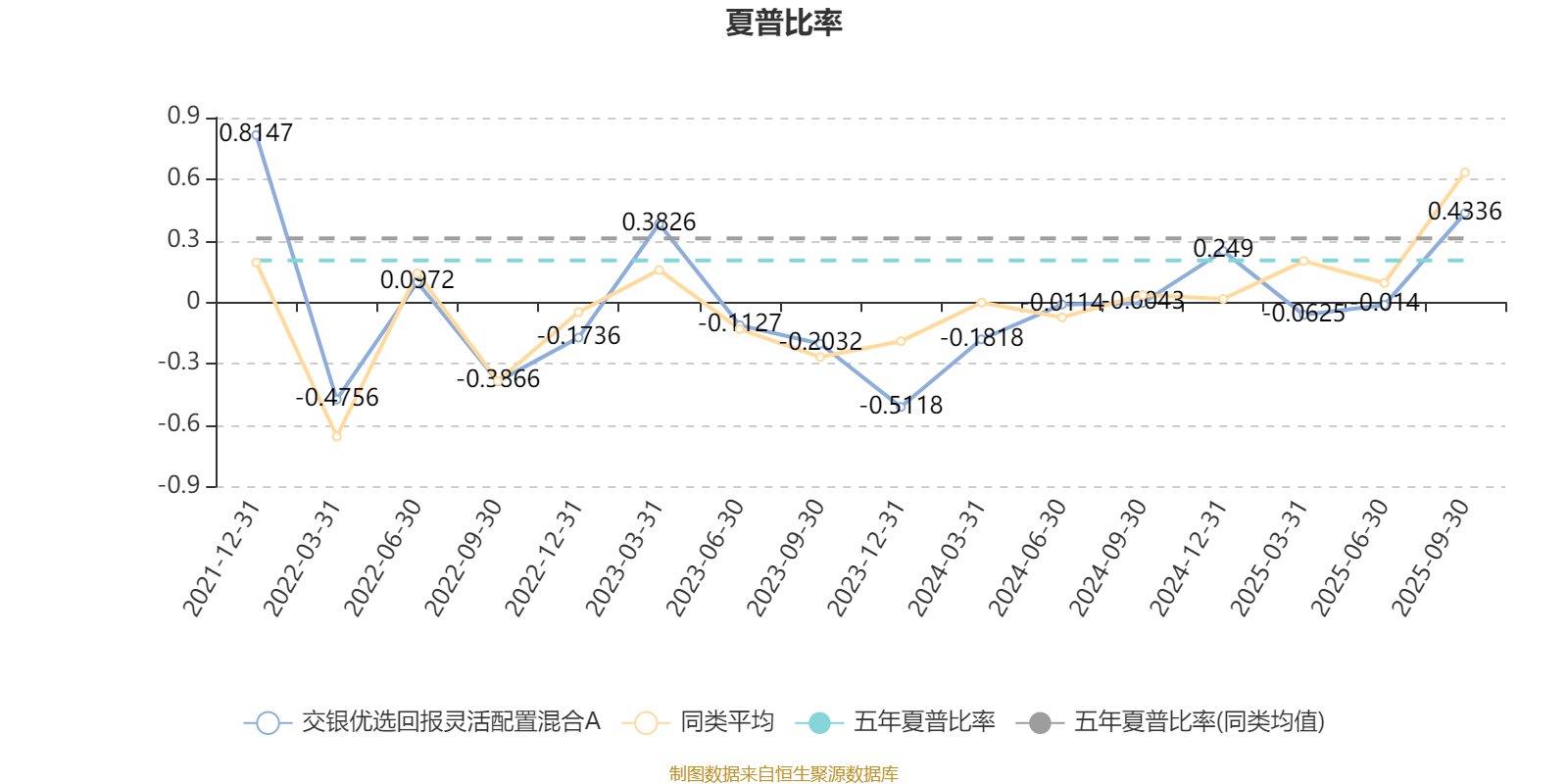 截至9月30日,基金近三年夏普比率为0.1101,位于同类可比基金1111/1285。