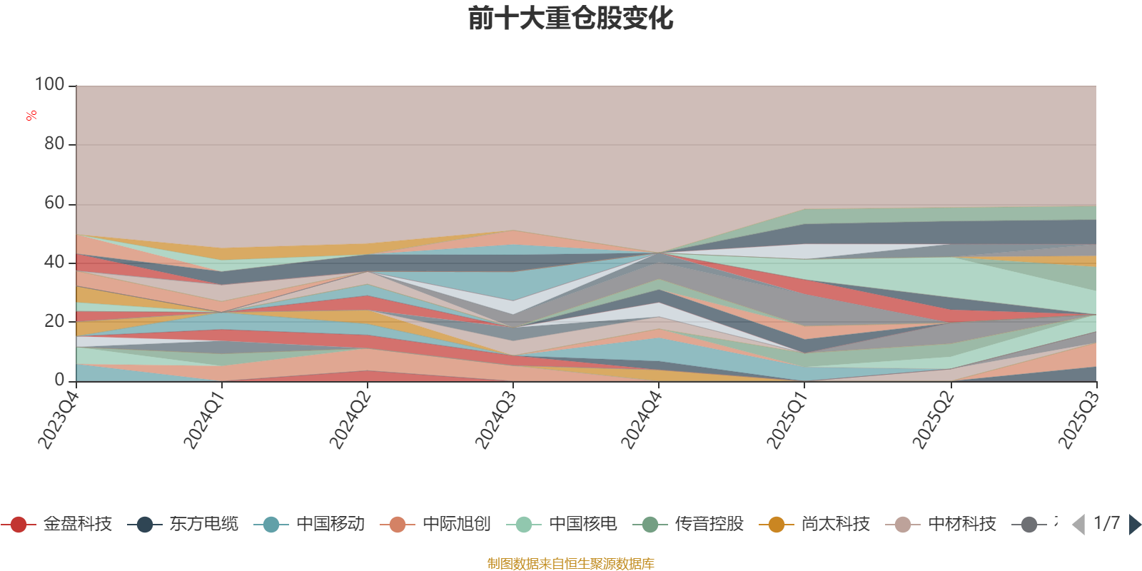 截至2025年三季度末,基金十大重仓股分别是新易盛、亿纬锂能、中际旭创、胜宏科技、大金重工、东方电缆、纽威股份、工业富联、巨化股份、石头科技。