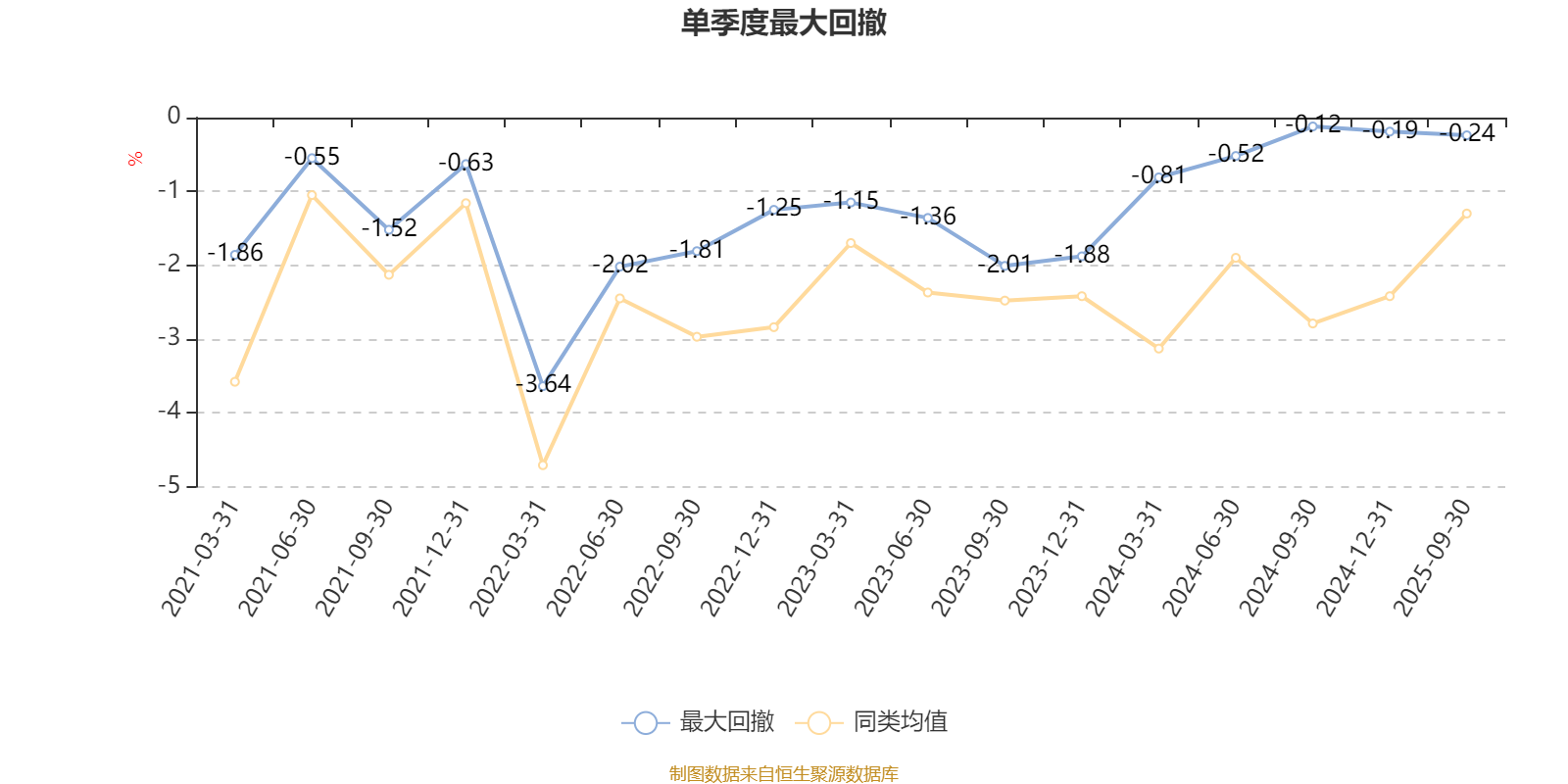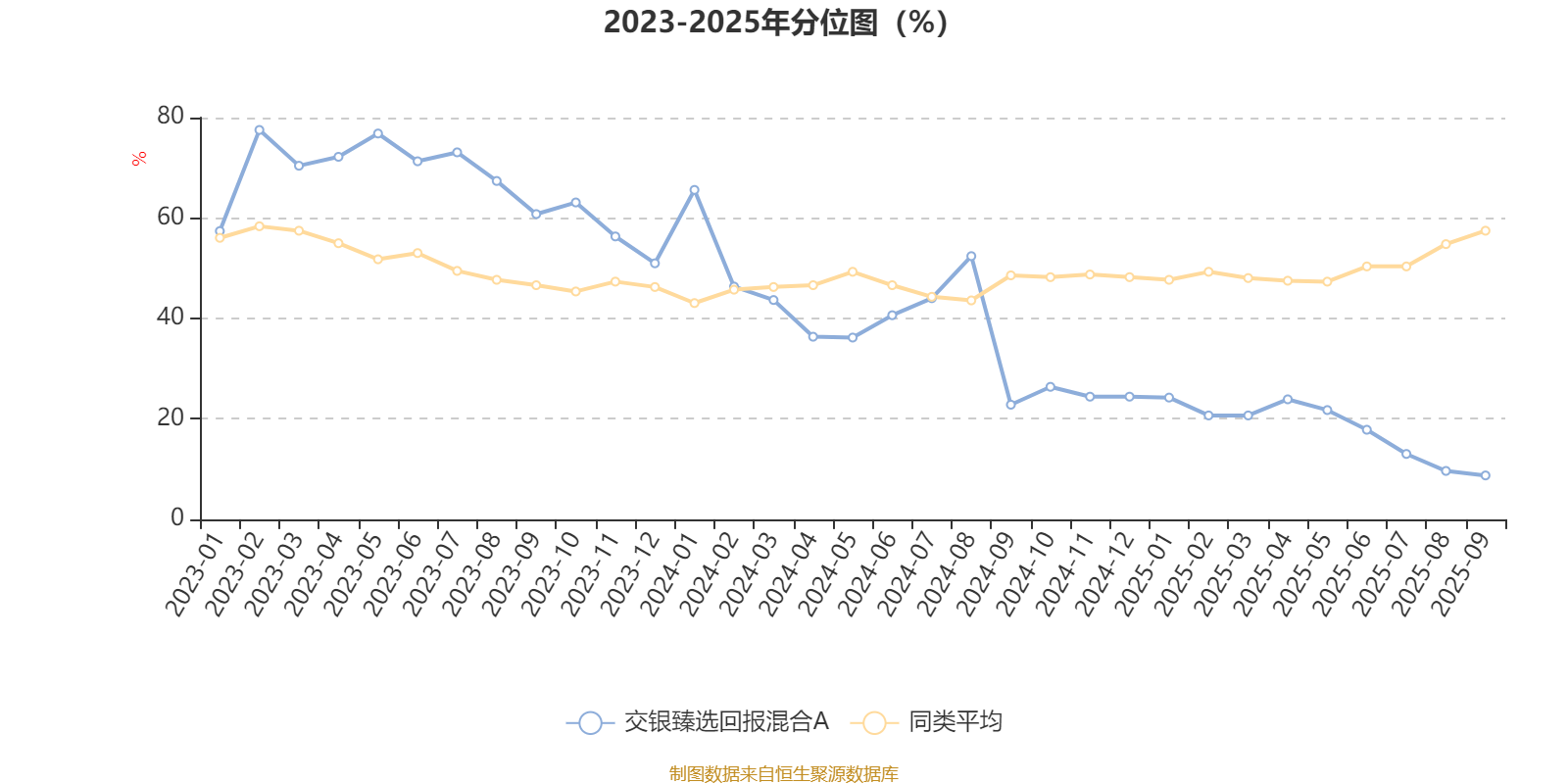 通过所选区间该基金净值增长率分位图,可以观察该基金与同类基金业绩比较情况。图为坐标原点到区间内某时点的净值增长率在同类基金中的分位数。