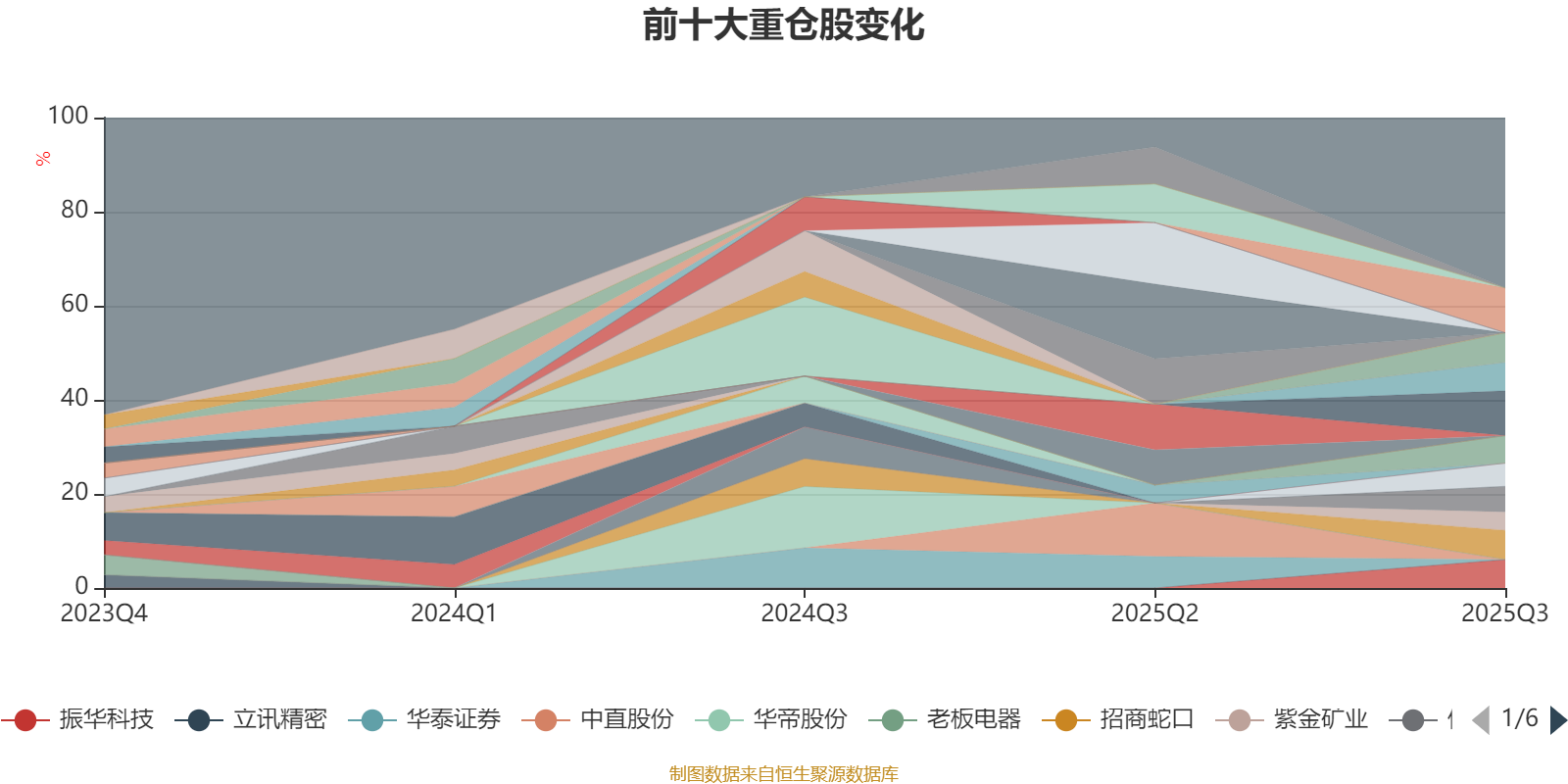 截至2025年三季度末,基金十大重仓股分别是江苏银行、东吴证券、恒瑞医药、招商蛇口、天山铝业、振华科技、天赐材料、佰维存储、北方华创、紫金矿业。