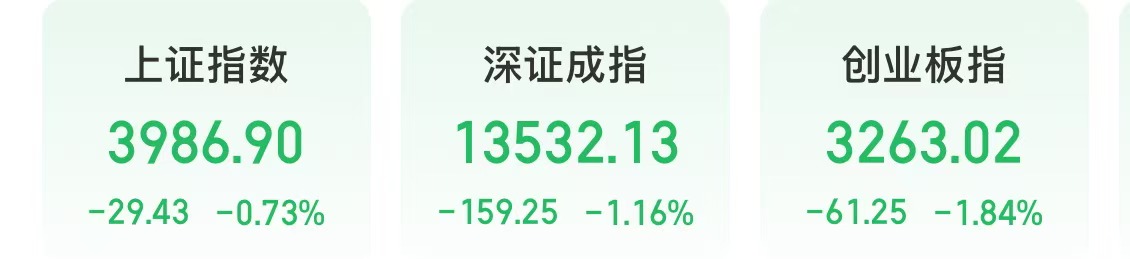 今天,A股调整。午后开盘,三大股指集体下跌。截至收盘,上证指数下跌0.73%,深证成指下跌1.16%,创业板指下跌1.84%。