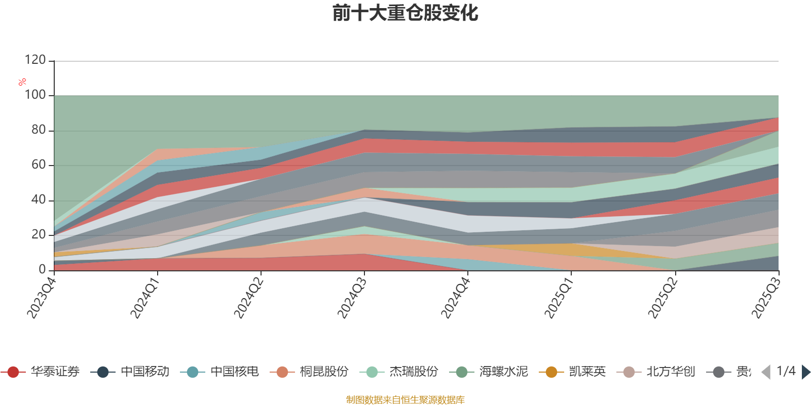 截至2025年三季度末,基金十大重仓股分别是贵州茅台、龙佰集团、盾安环境、海尔智家、北方华创、海康威视、中国移动、万华化学、中国巨石、海螺水泥。
