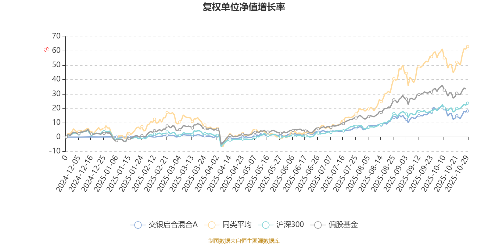 截至10月29日,交银启合混合A近三个月复权单位净值增长率为10.16%,位于同类可比基金216/229;近半年复权单位净值增长率为18.47%,位于同类可比基金220/229。