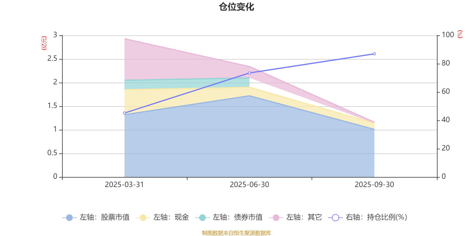 据定期报告数据统计,成立以来平均股票仓位为68.55%,同类平均为86.77%。2025年三季度末基金达到86.98%的最高仓位,2025年一季度末最低,为45.2%。