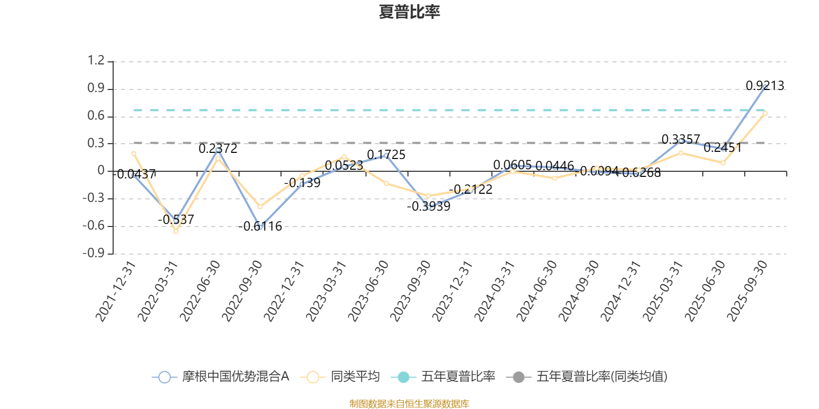 截至9月30日,基金近三年夏普比率为0.9528,位于同类可比基金126/1285。