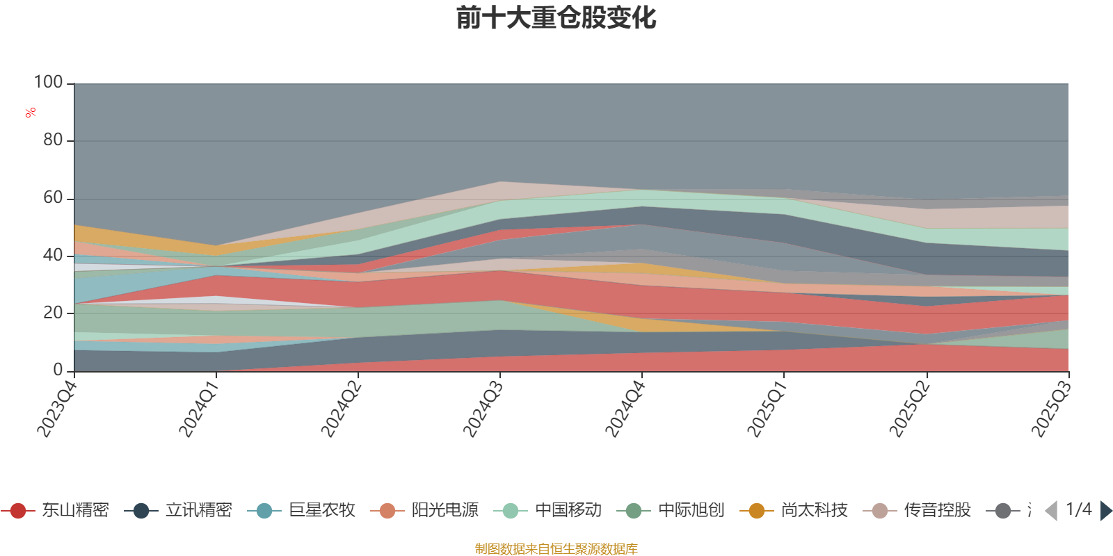 截至2025年三季度末,基金十大重仓股分别是胜宏科技、宁德时代、亿纬锂能、新易盛、东山精密、中际旭创、华友钴业、徐工机械、洛阳钼业、艾力斯。