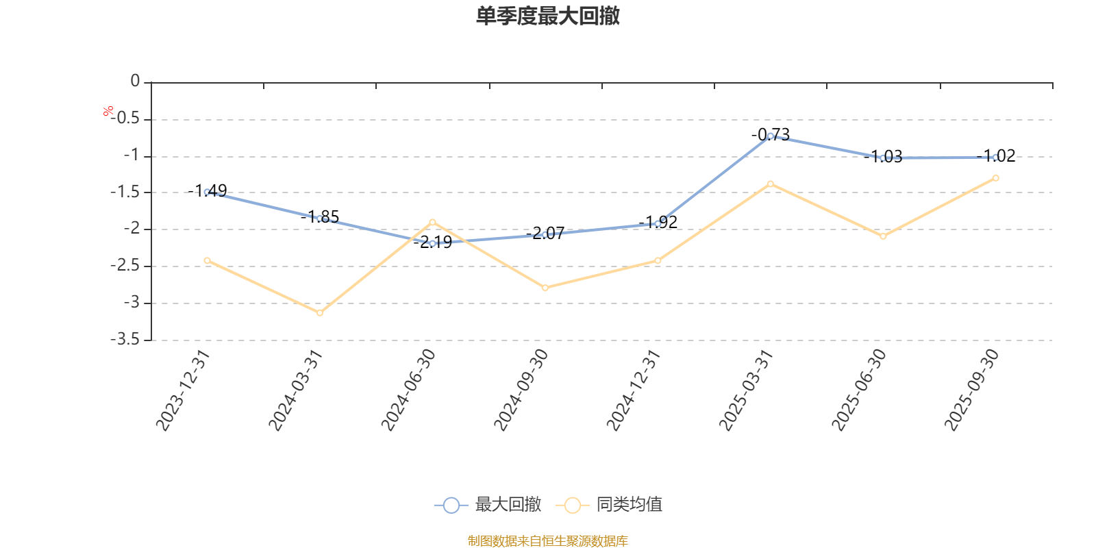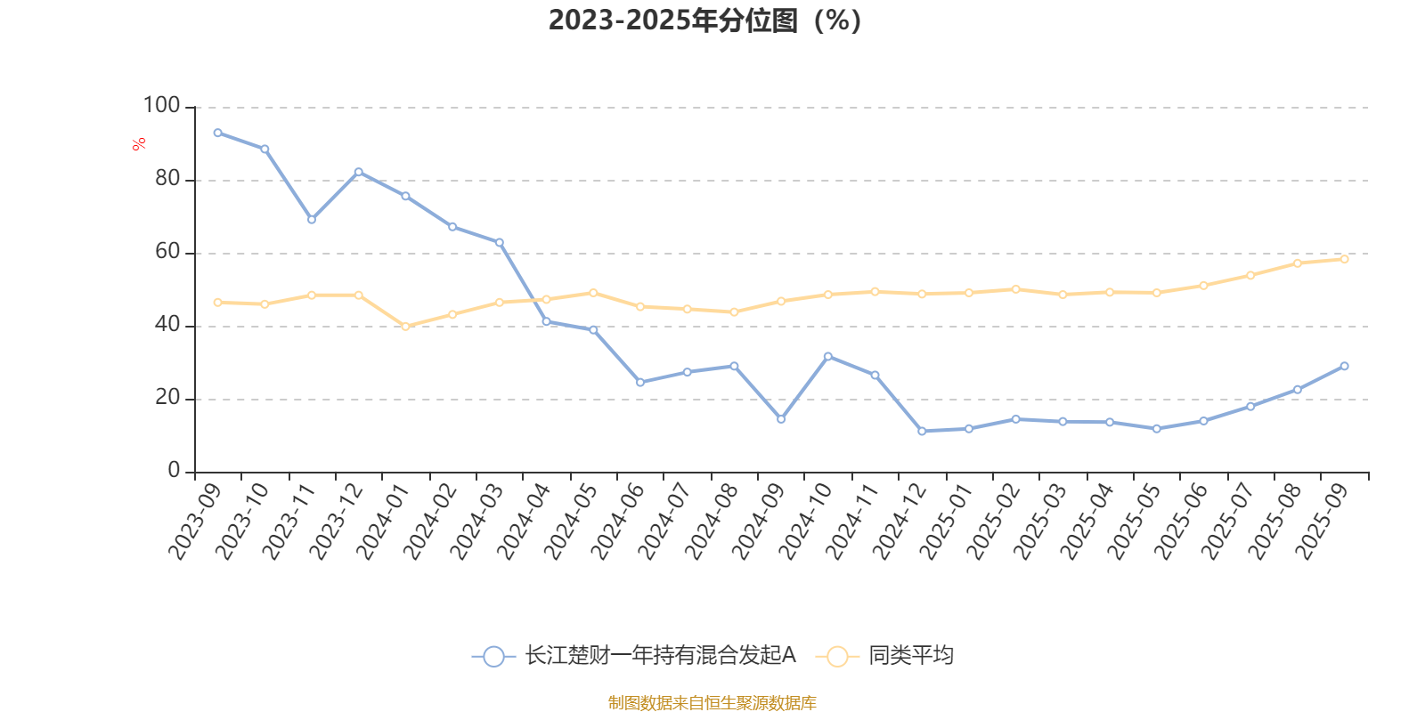 通过所选区间该基金净值增长率分位图,可以观察该基金与同类基金业绩比较情况。图为坐标原点到区间内某时点的净值增长率在同类基金中的分位数。