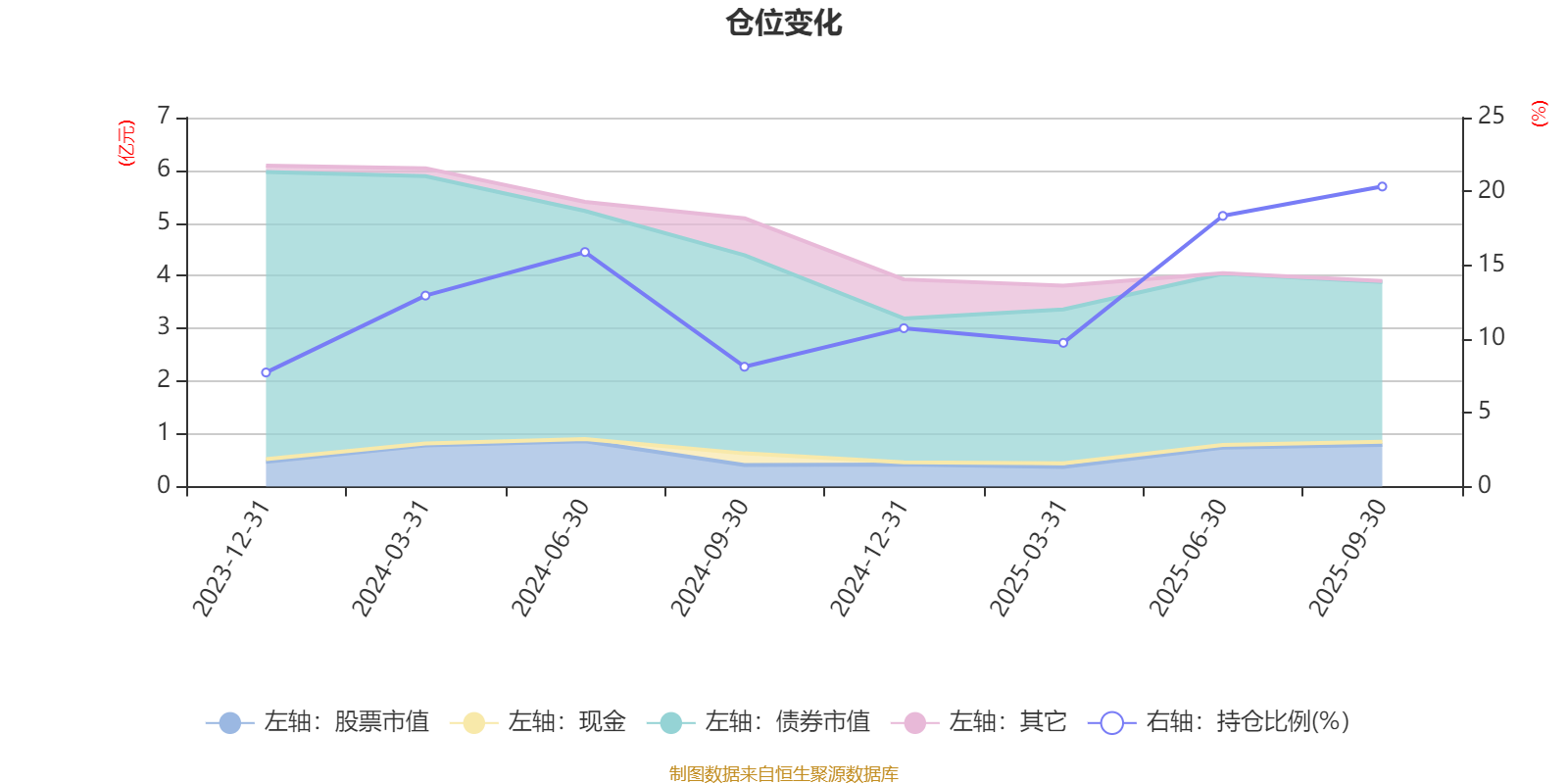 据定期报告数据统计,成立以来平均股票仓位为12.98%,同类平均为19.14%。2025年三季度末基金达到20.33%的最高仓位,2023年末最低,为7.73%。