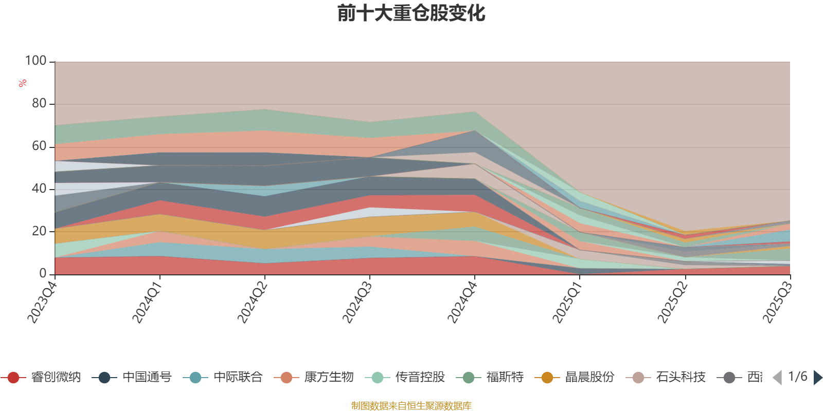 截至2025年三季度末,基金十大重仓股分别是寒武纪、海光信息、睿创微纳、中芯国际、腾讯控股、阿里巴巴-W、澜起科技、航亚科技、中微公司、百利天恒。