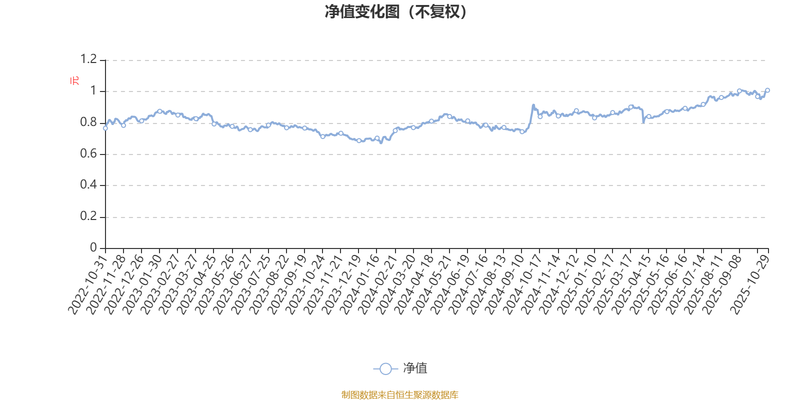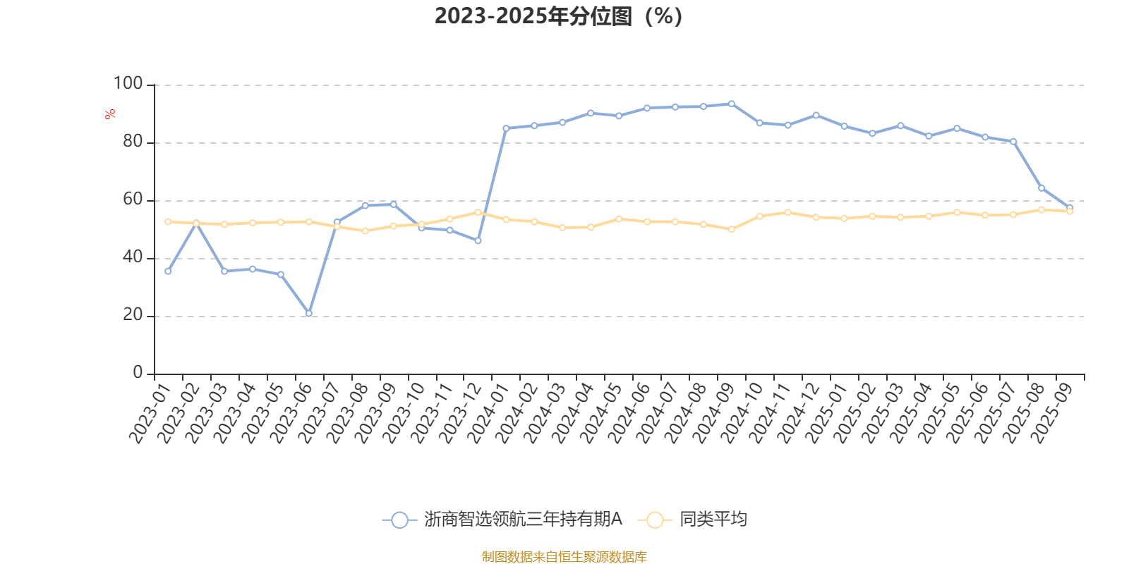 通过所选区间该基金净值增长率分位图,可以观察该基金与同类基金业绩比较情况。图为坐标原点到区间内某时点的净值增长率在同类基金中的分位数。