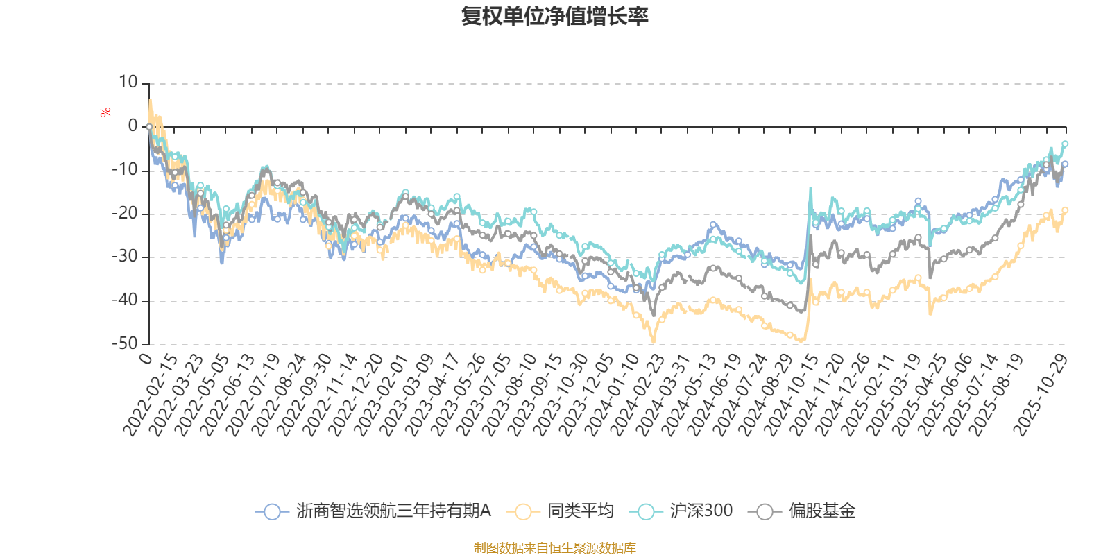截至10月29日,浙商智选领航三年持有期A近三个月复权单位净值增长率为4.44%,位于同类可比基金537/621;近半年复权单位净值增长率为19.52%,位于同类可比基金482/621;近一年复权单位净值增长率为16.94%,位于同类可比基金482/611;近三年复权单位净值增长率为31.63%,位于同类可比基金177/518。
