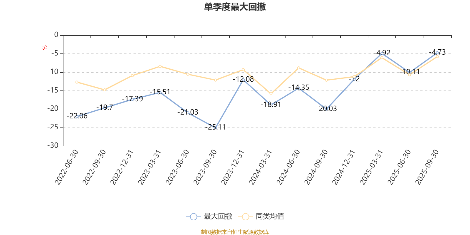 截至10月28日,基金近三年最大回撤为58.37%,同类可比基金排名353/363。单季度最大回撤出现在2023年三季度,为25.11%。