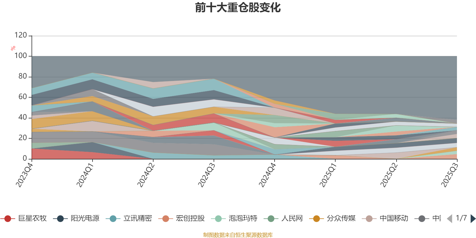 截至2025年三季度末,基金十大重仓股分别是紫金矿业、宏创控股、振华股份、宁德时代、菲利华、世运电路、分众传媒、中国海洋石油、帝尔激光、泡泡玛特。