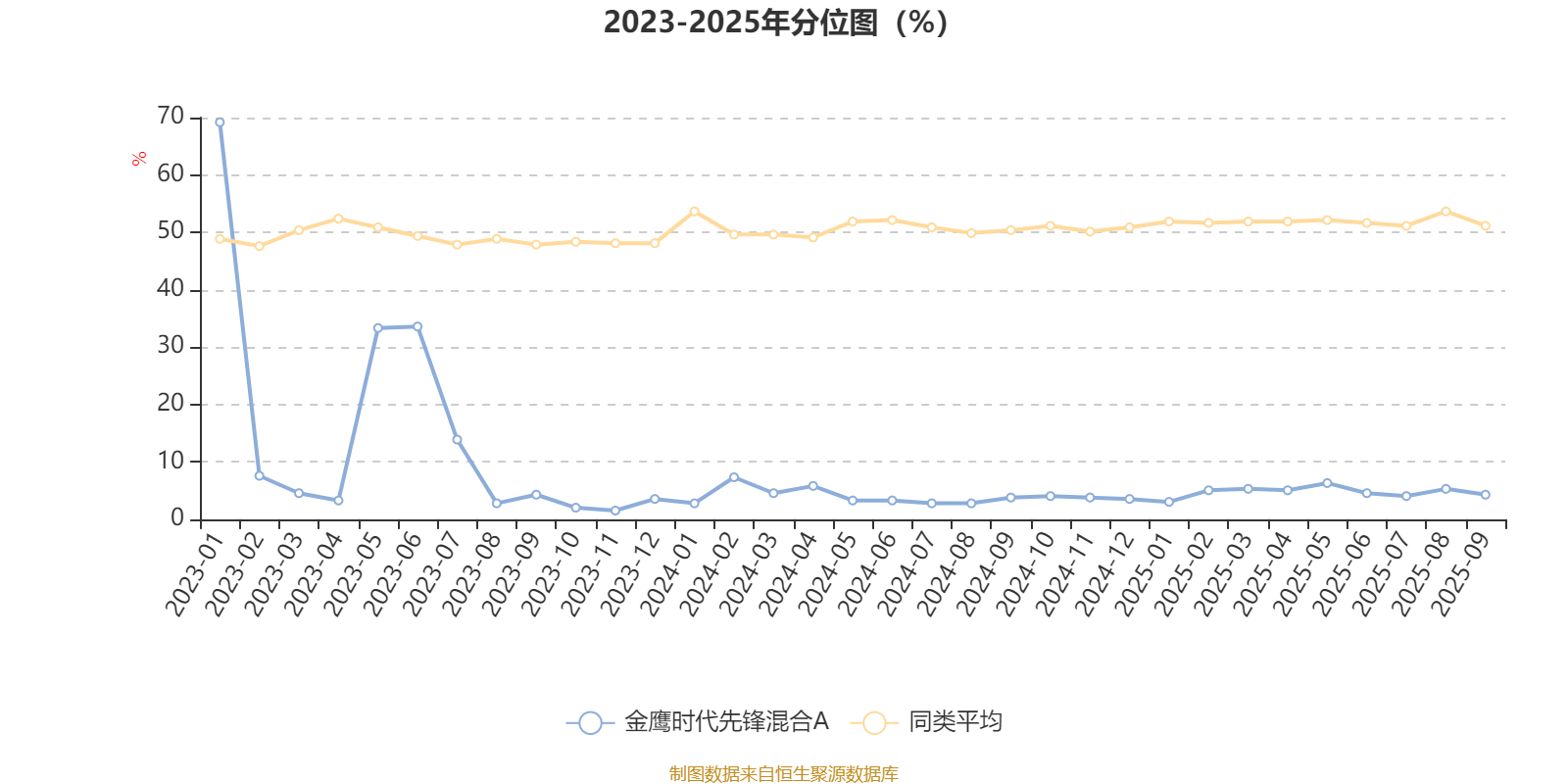 通过所选区间该基金净值增长率分位图,可以观察该基金与同类基金业绩比较情况。图为坐标原点到区间内某时点的净值增长率在同类基金中的分位数。