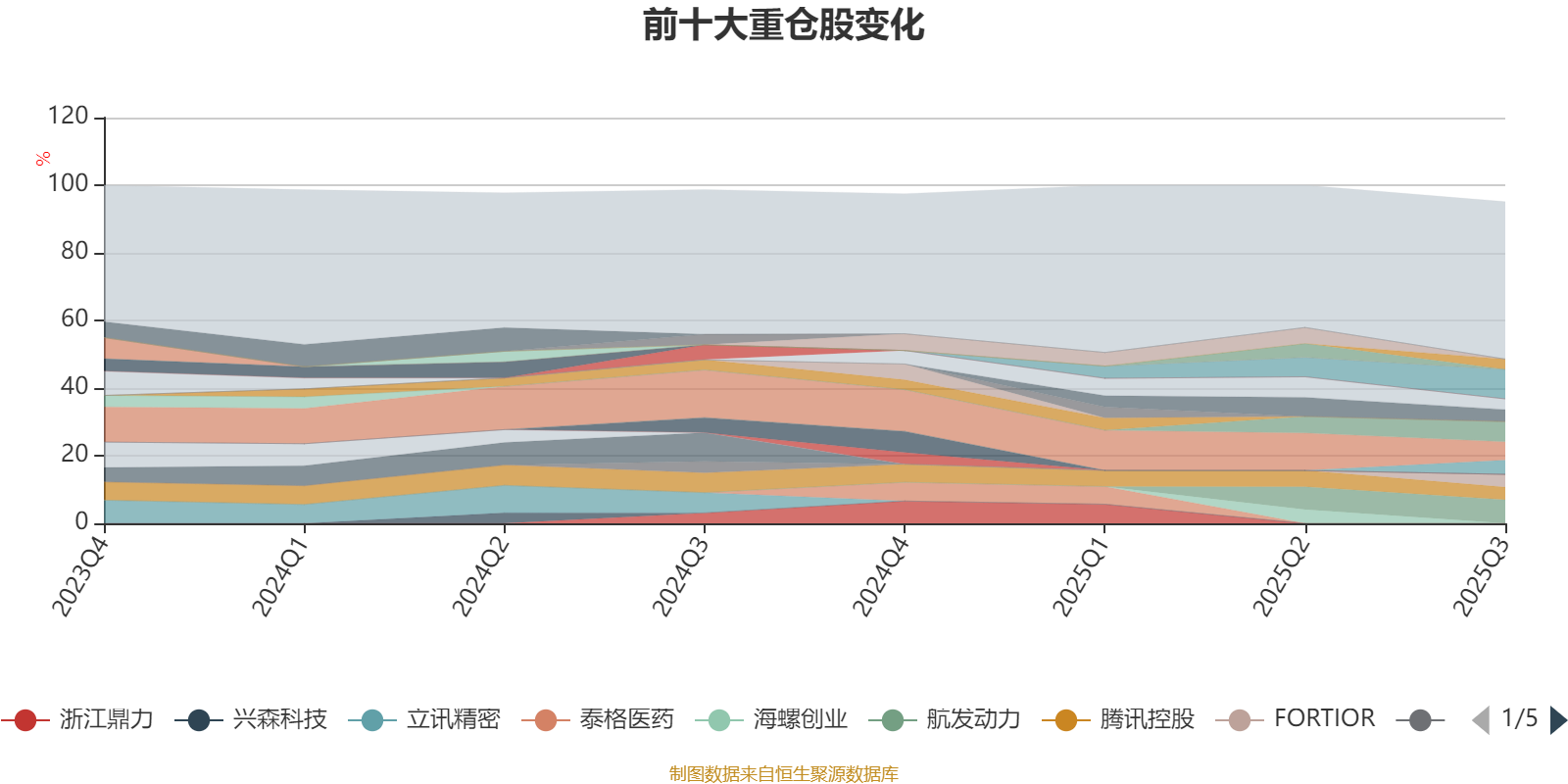 该基金持股集中度较高。截至2025年三季度末,基金十大重仓股分别是歌尔股份、航发动力、农夫山泉、顺丰控股、中国金茂、FORTIOR、腾讯控股、龙源电力、恒瑞医药、润丰股份。