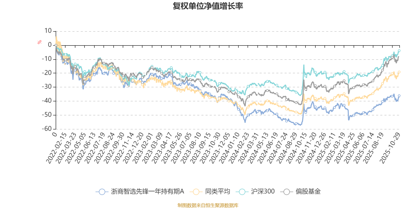 截至10月29日,浙商智选先锋一年持有期A近三个月复权单位净值增长率为11.04%,位于同类可比基金406/621;近半年复权单位净值增长率为28.97%,位于同类可比基金330/621;近一年复权单位净值增长率为16.31%,位于同类可比基金486/611;近三年复权单位净值增长率为-9.08%,位于同类可比基金473/518。
